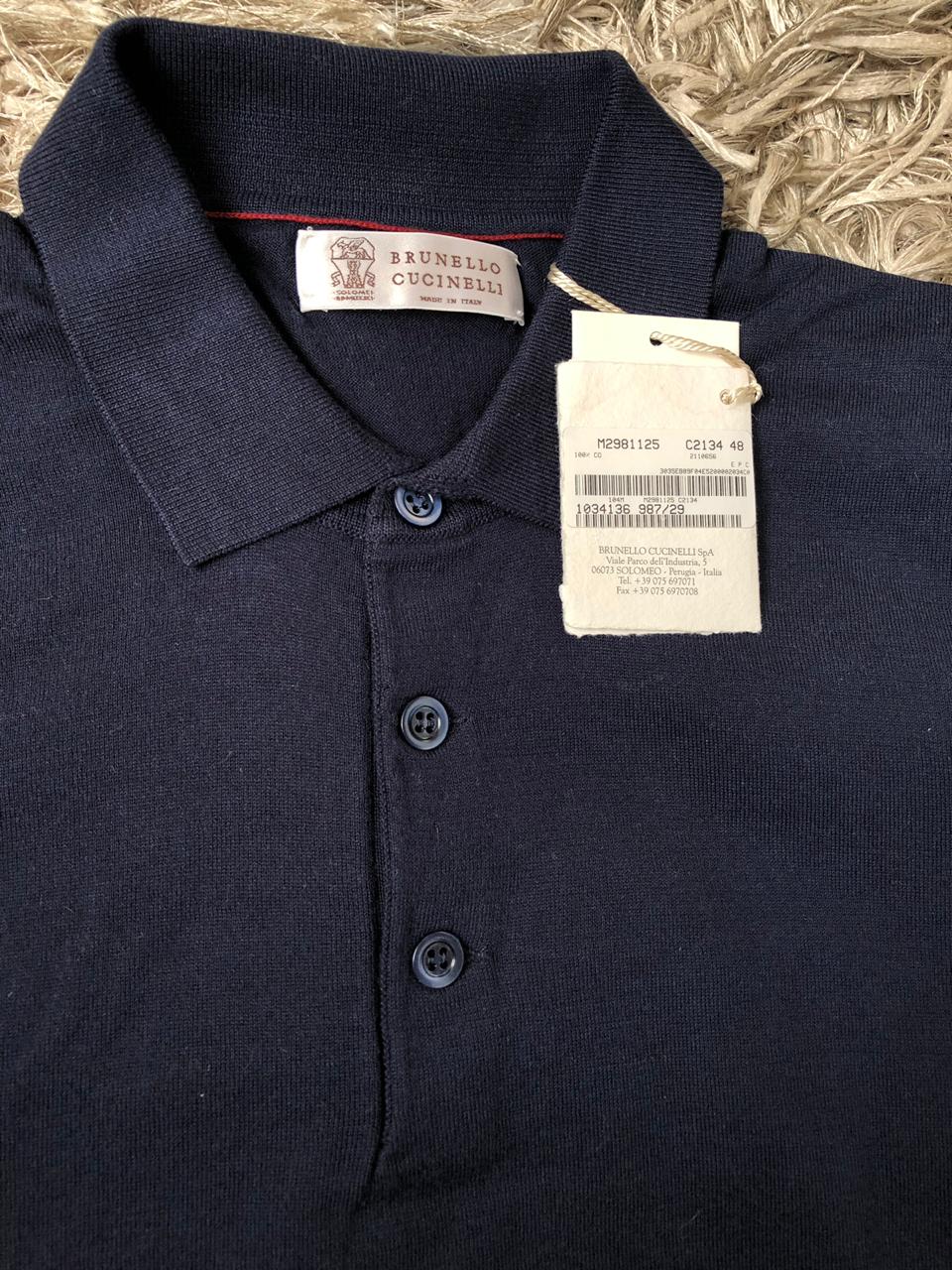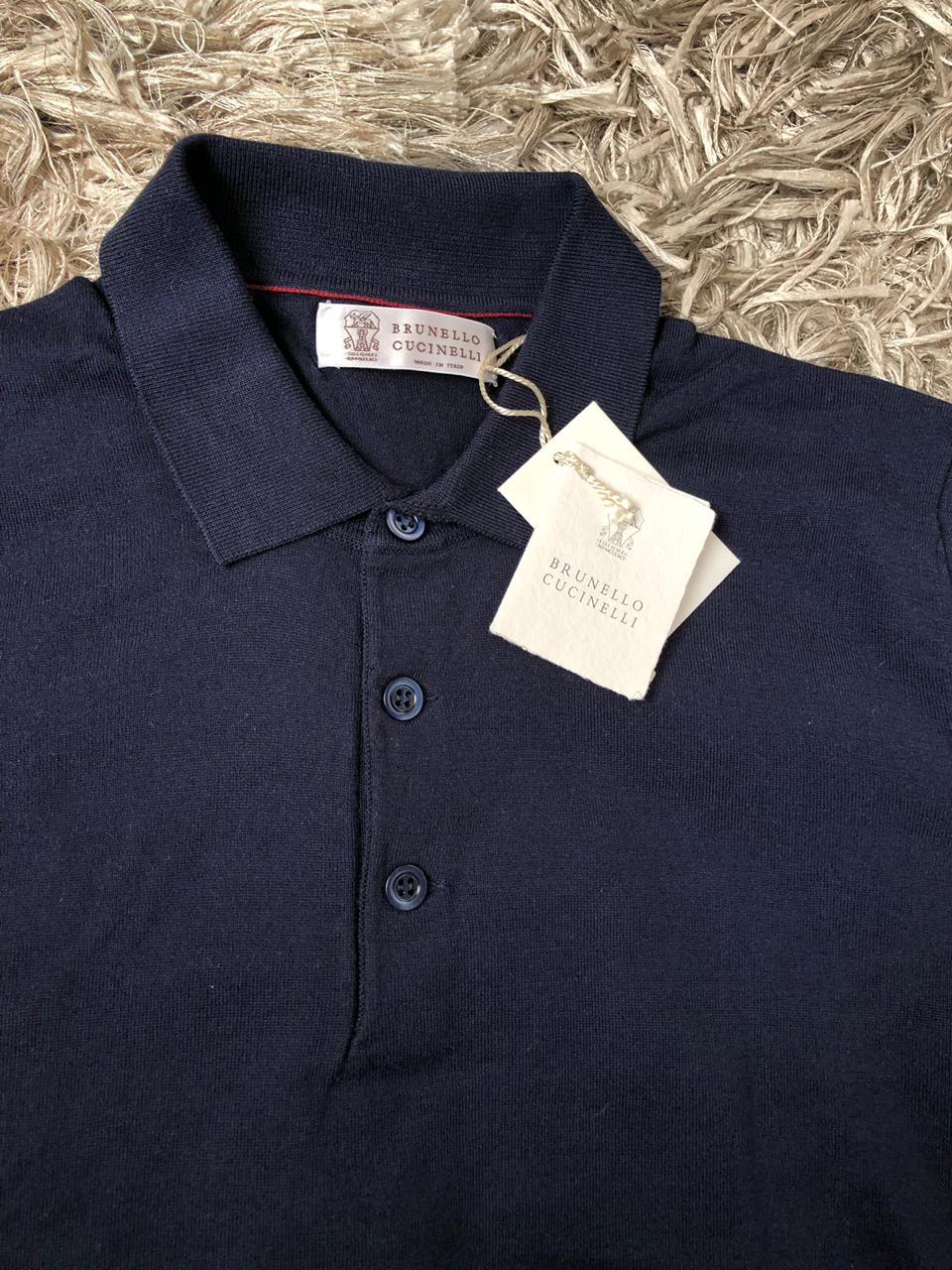 BRUNELLO CUCINELLI новый мужской джемпер-поло с коротким рукавом тёмно-синего цвета (48 размер)