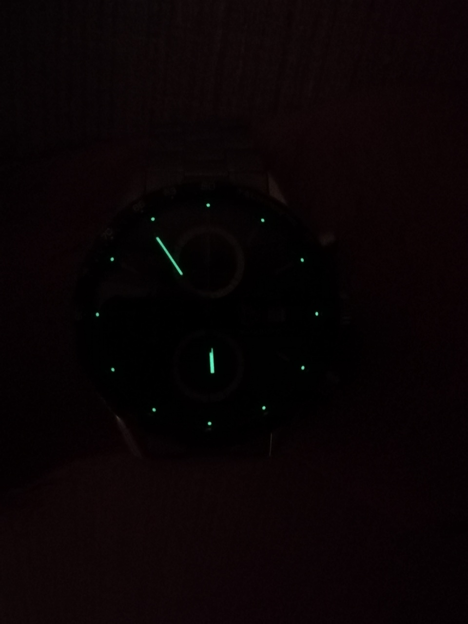 Циферблат черного цвета, дополнительные индикаторы с гильошированием в виде концентрических кругов. Печать эмблемы TAG Heuer, аппликация часовых индексов и окантовки индикаторов, стрелки с покрытием родием и финишной шлифовкой. Светящееся в темноте покрытие люминофором Superluminova стрелок и разметки циферблата.