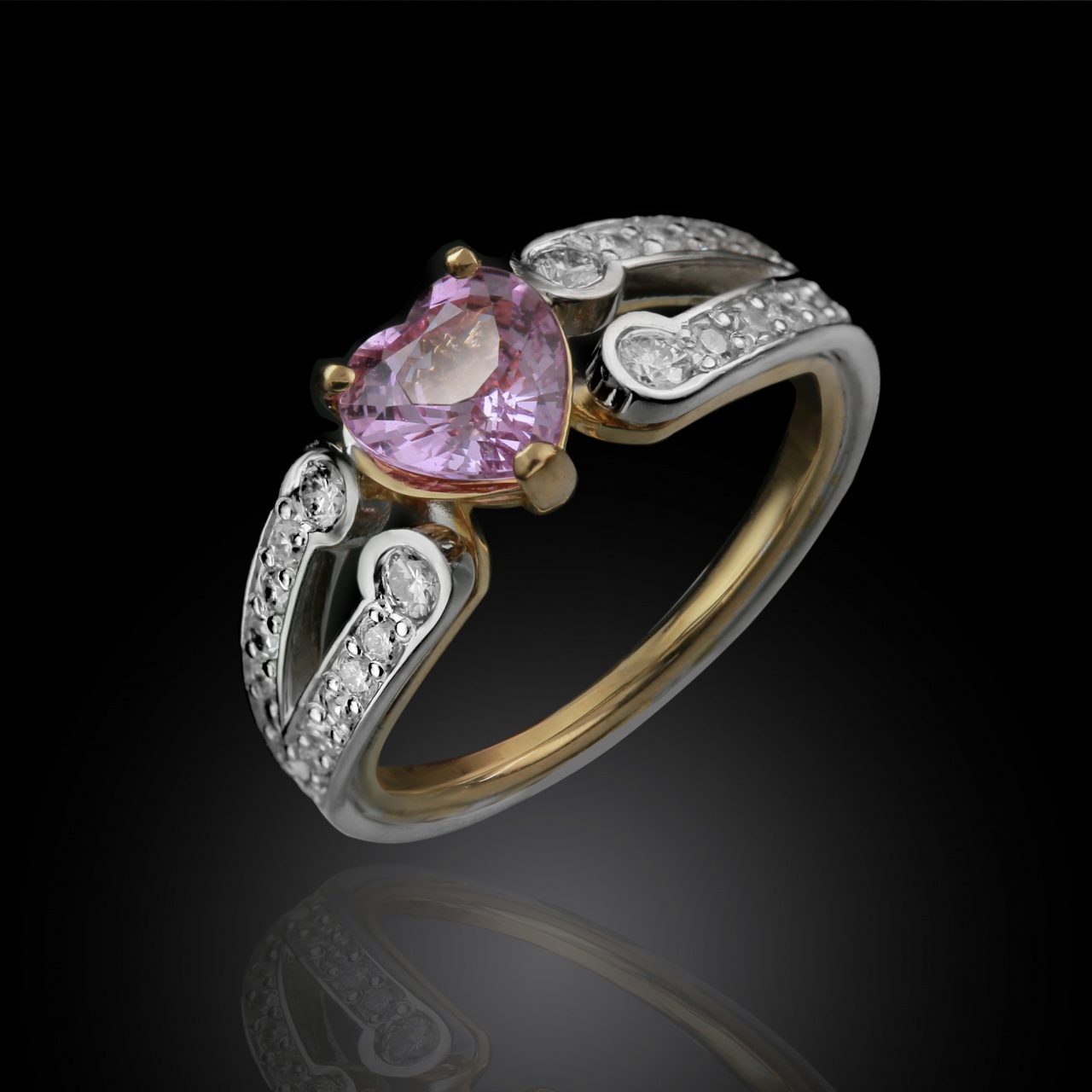 Кольцо из желтого и белого золота с сапфиром 0,95 карат и бриллиантами 0,3 карат