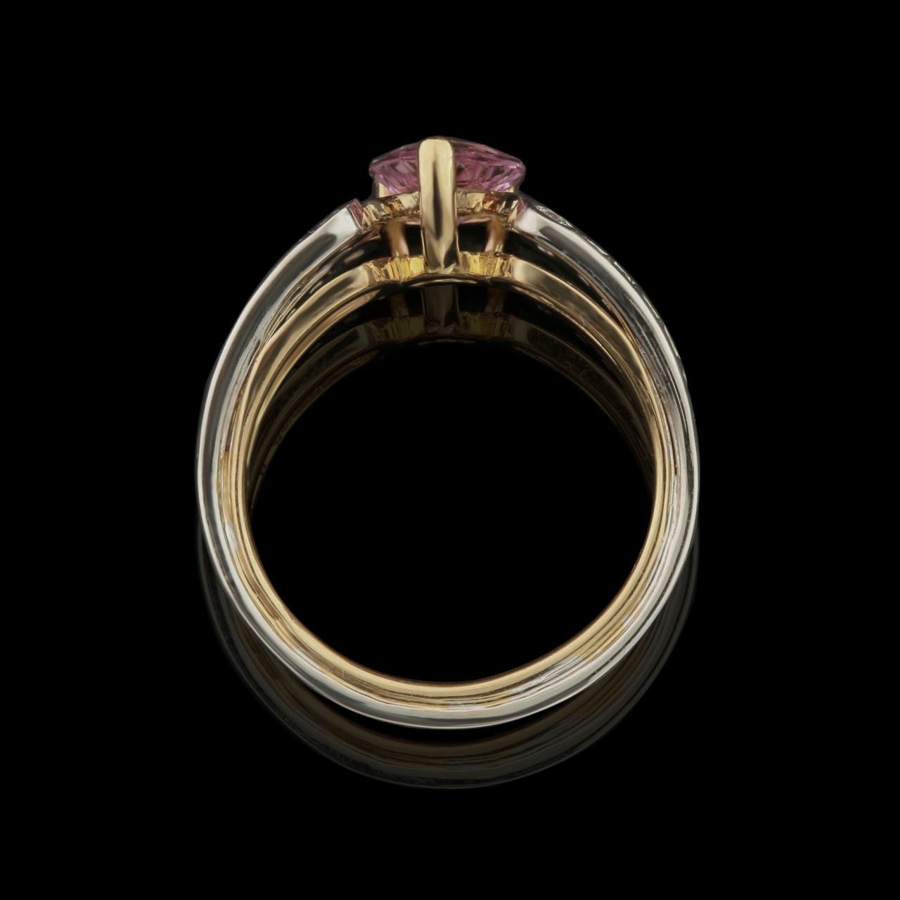Кольцо из желтого и белого золота с сапфиром 0,95 карат и бриллиантами 0,3 карат (сертификат МГЦ)