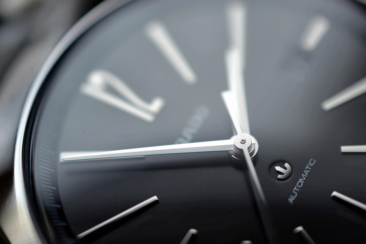 Циферблат черный. Метки и цифры накладные, с родиевым покрытием, цифры арабские, серебристого цвета.