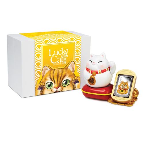 Эта монета имеет белую счастливую кошку с правой лапой, поднятой за богатство и удачу. Дизайн включает в себя китайские иероглифы “вступил в богатстве и процветании”, и монетный двор в Перте традиционных " П " - клеймо.