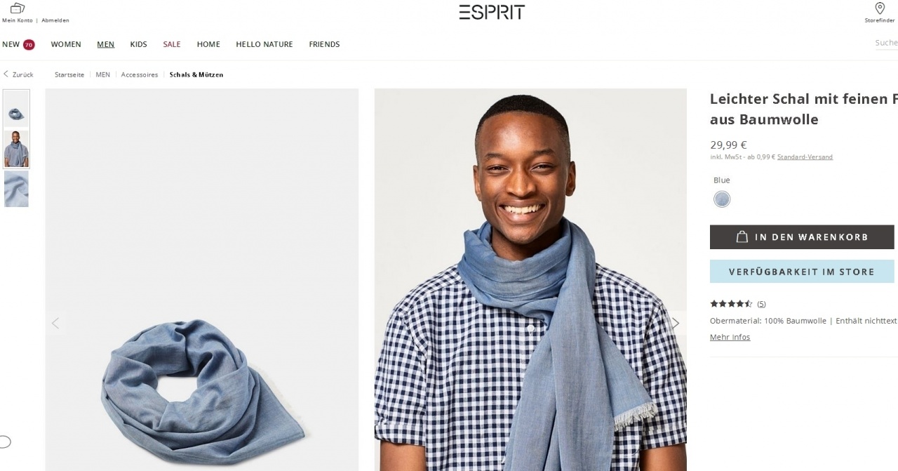 Новый мужской летний шарф Esprit (100% хлопок, оригинал)