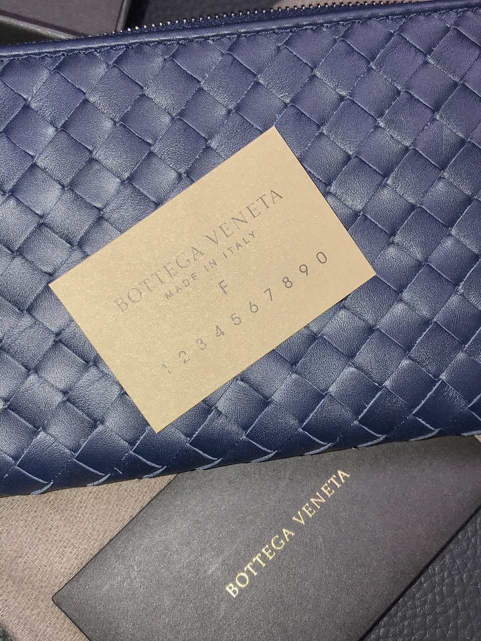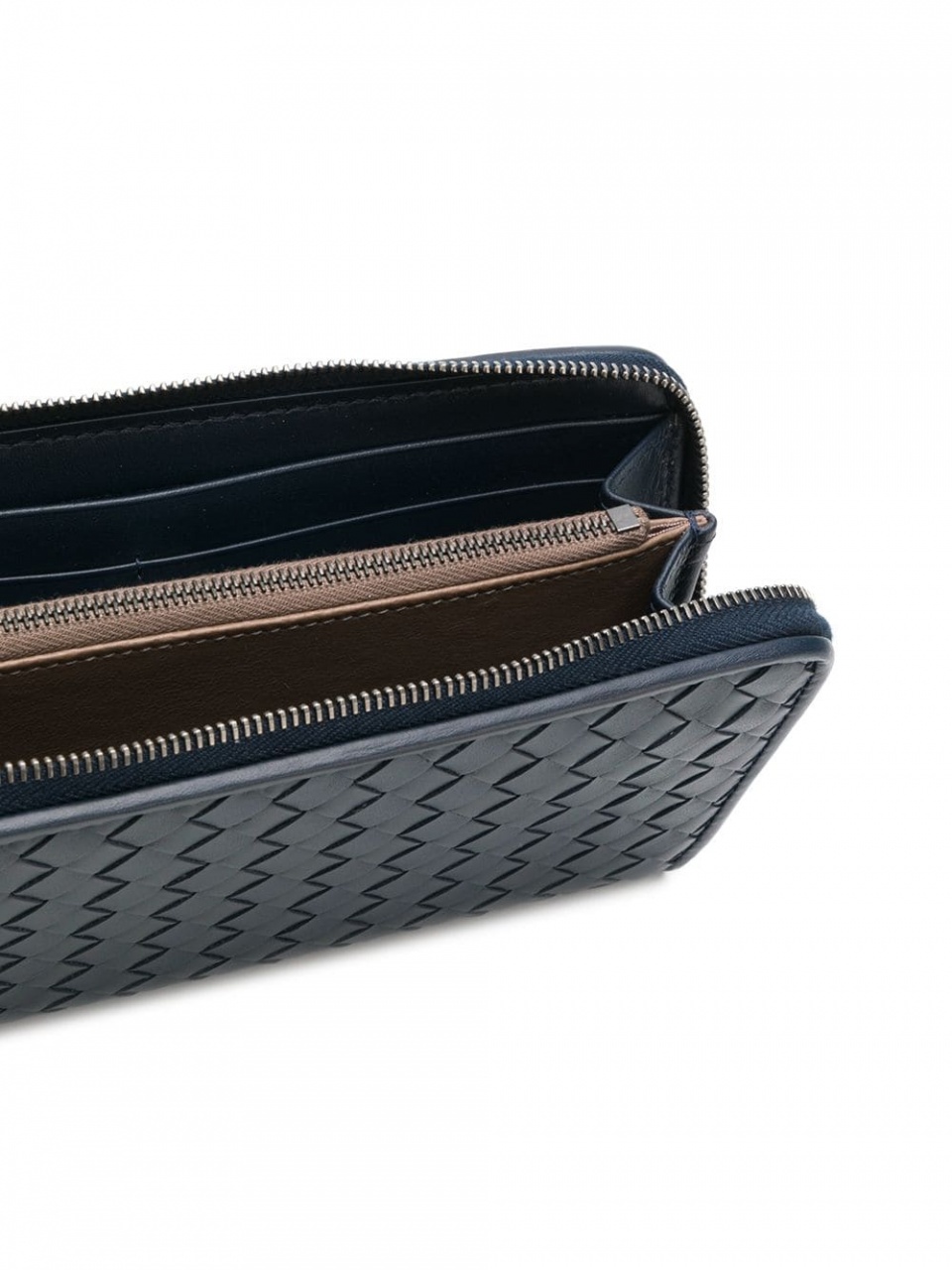 Bottega Veneta Navy Intrecciato Zip Around Wallet