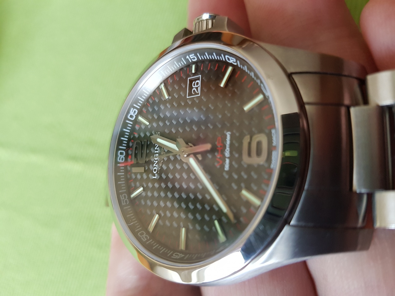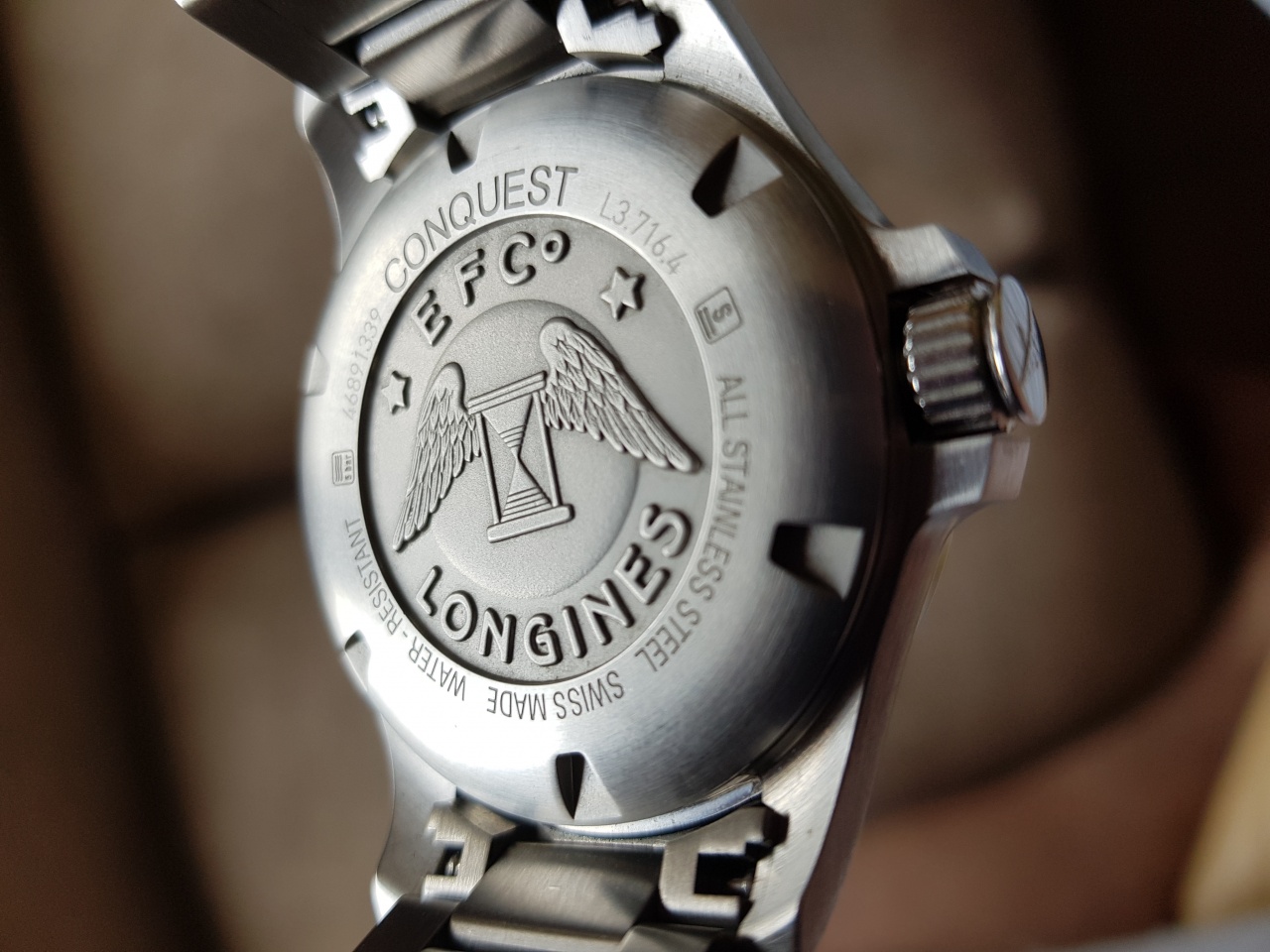 Оформление: Антибликовое покрытие стекла, в механизме использована технология V.H.P., разработанная ETA специально для Longines, которая обеспечивает повышенную точность хода часов, а также системы автокорректировки показаний после ударов (до 500 g) и воздействия магнитного поля