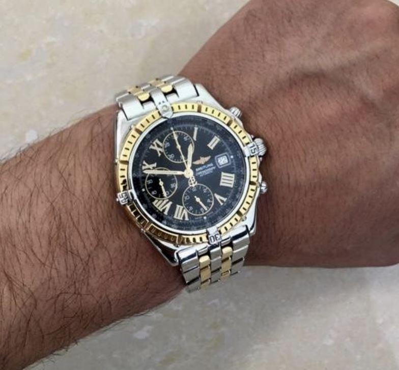 Красивейший Breatling Chronograph диаметр 44 мм сталь/золото на браслете