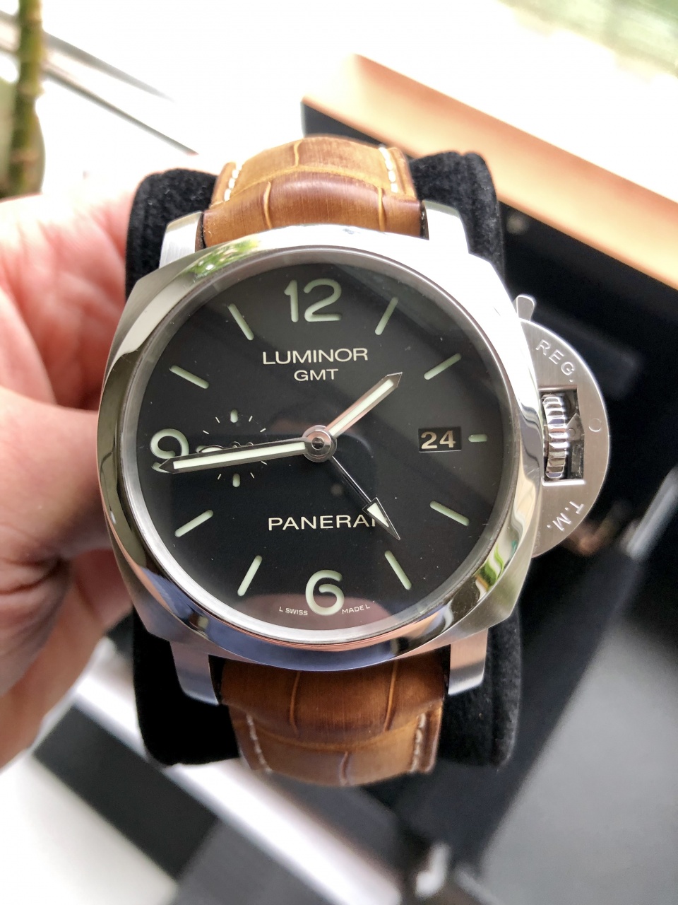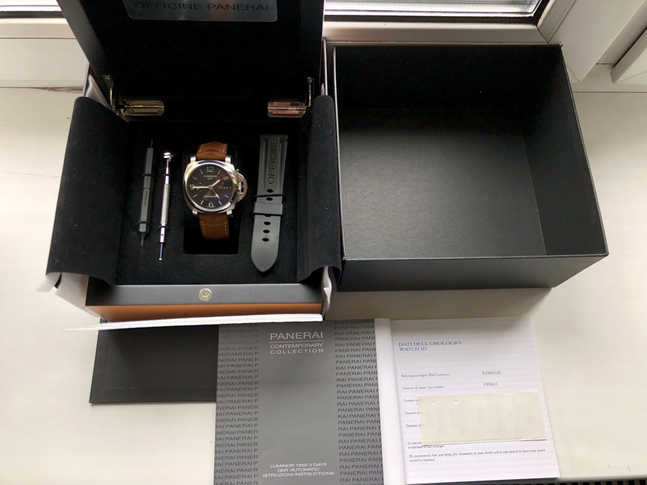 Предлагаю приобрести отличные швейцарские часы Panerai Luminor 1950 3 Days GMT Automatic Acciaio PAM00320. Стоимость новых на сегодняшний день - 7500$. Документы, упаковка - всё есть. Немного о модели: - Мужские часы серии Luminor 1950 выделяются своей элегантностью, неординарностью и представительностью. Они наделены своим неповторимым характером и имеют собственную харизму. Это лучший выбор для тех, кто хочет подчеркнуть свой высокий статус и неординарность. Корпус часов изготовлен из нержавеющей стали и имеет размер 44 мм. Механизм с автоматическим подзаводом работает от амплитуды движения руки. Эти часы созданы специально для дайвинга, они могут выдерживать глубинное давление воды и обладают водонепроницаемостью в 300 м. Циферблат закрыт прозрачным антибликовым стеклом из сапфирового хрусталя высокой прочности, благодаря чему обеспечивается максимальная защита от сколов и механических повреждений. Из сапфирового хрусталя сделана и задняя крышка, которая дает возможность увидеть работу механизма и вносит нотку неординарности. Модель поставляется на кожаном ремешке с простой стальной застежкой. Запас до 72 часов. Возможна доставка в Питер и Москву.