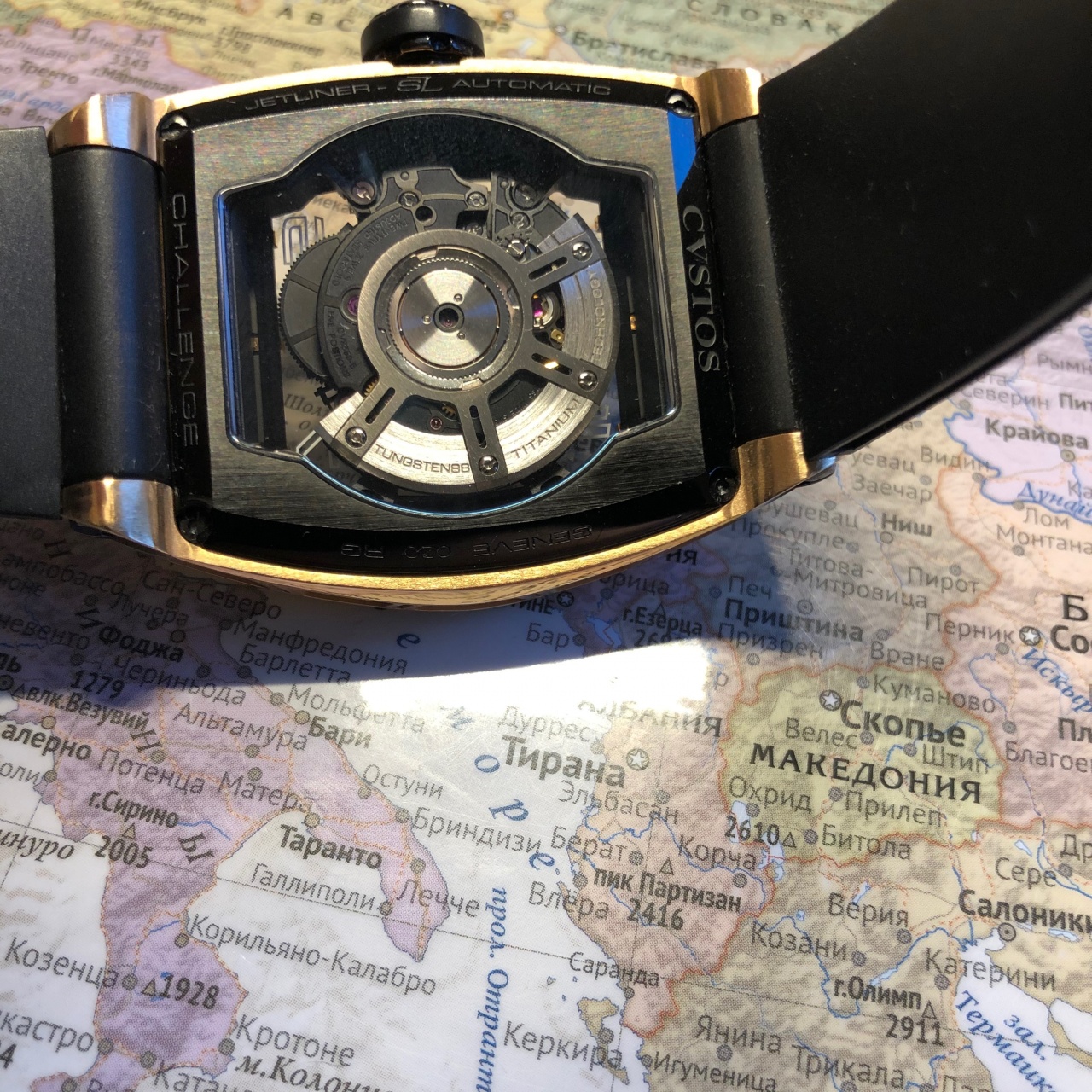 В продаже красивейший скелетон CVSTOS CHALLENGE JET-LINER SL RED GOLD. Полный комплект. Состояние идеальное, носились крайне редко.