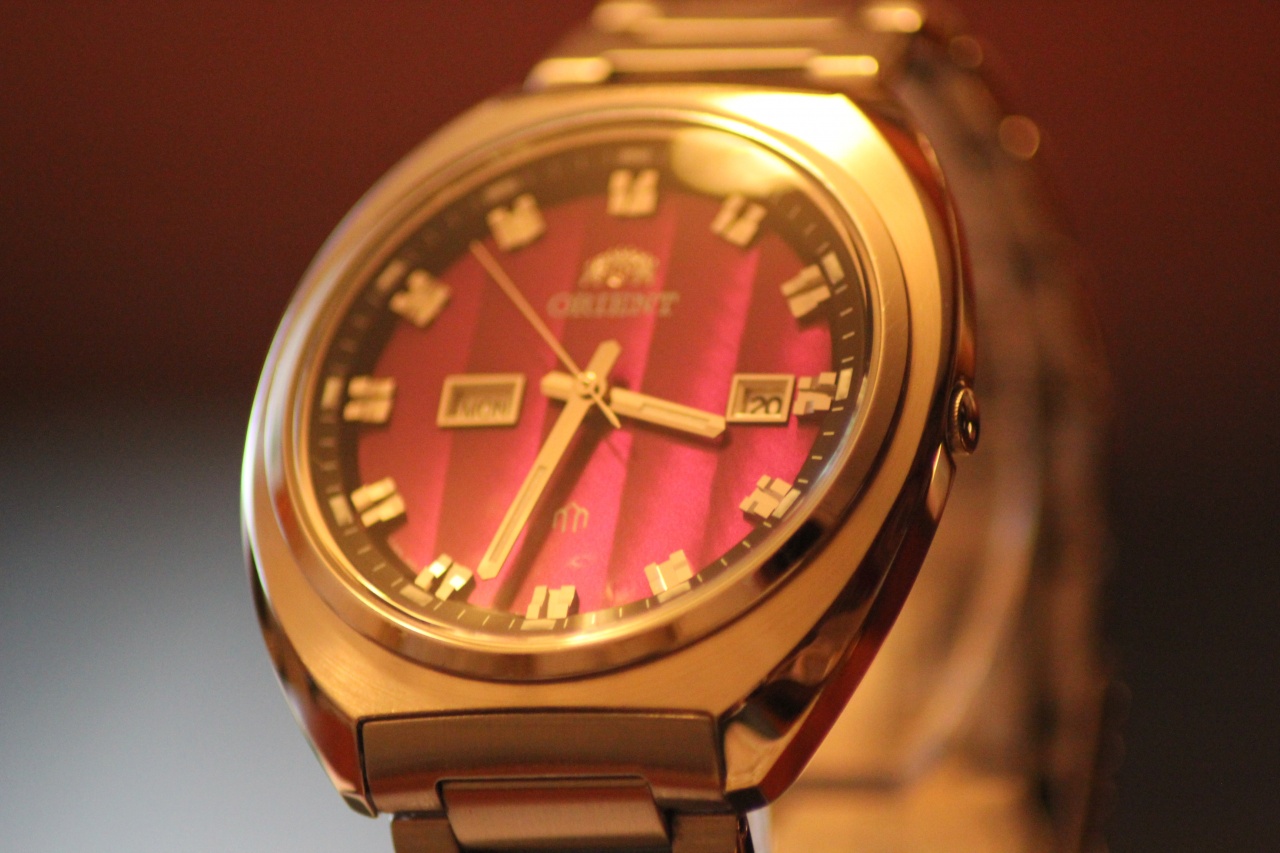 продам часы марки Ориент,исполненные в стиле неоклассика 70х,посему кварцевые,как дань историческому взлёту и распространению кварца в массы. корпус,браслет- сталь,стекло- минеральное. есть царапина в районе 8 часов,отразил на фото. в целом по корпусу,браслету,застежке есть царапины от постоянной носки в течение года. так же год назад,после покупки,была установлена свежая батарейка Рената. механизм на 1 камне,имеет индикацию часов,минут,секунд,даты и дня недели. присутствует индикация разряда батареи в виде перепрыгивания секундной стрелки через деление. светомасса на стрелках и часовых метках. циферблат сиренево-фиолетовый,с вертикальными полосами,а-ля гильеширование под тиковую стилистику)). герметичность до 5 атм.