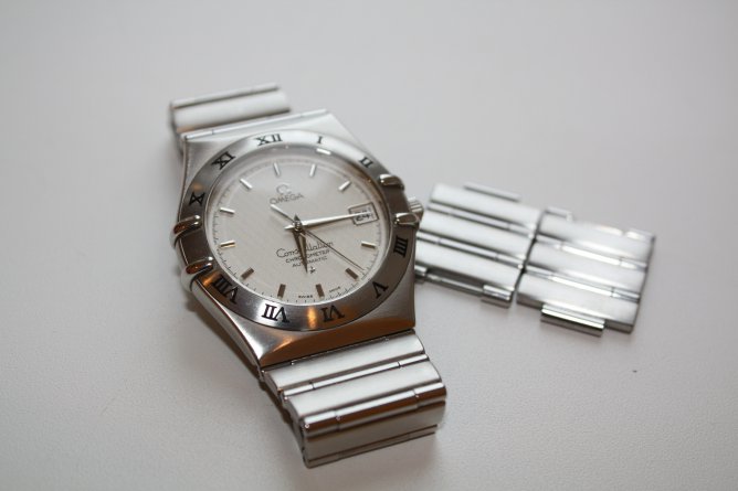 Комплект: часы на браслете, снятые 6 звеньев браслета, 2 коробки, 2 пластиковых карты, инструкция.