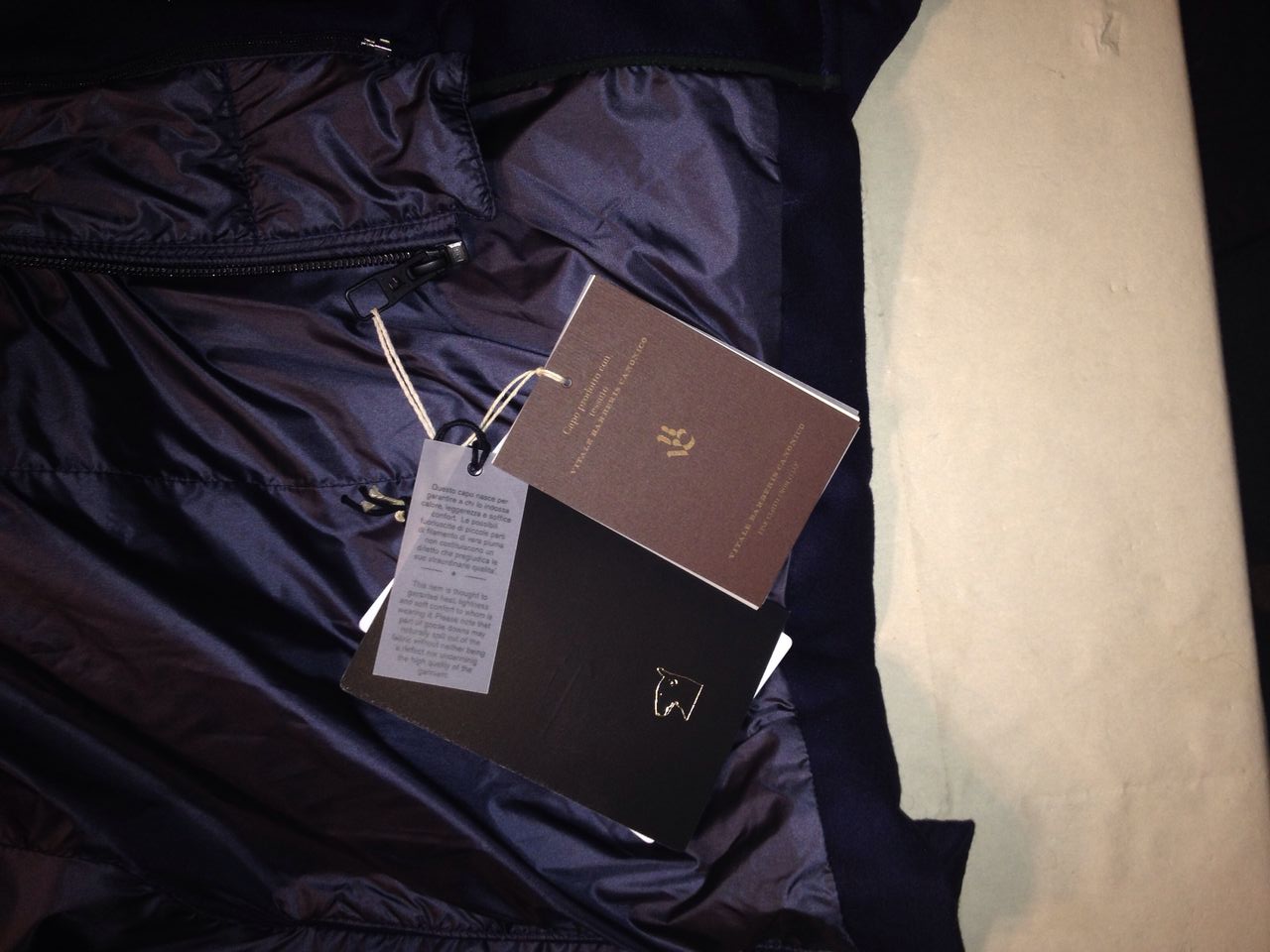 MONTECORE исполнения Premium-Exclusive Edition, темно-синего цвета, однобортная модель с лацканами, из каландрированной прорезиненной шерсти не промокает и не выпускает тепло наружу, ветрозащитная вставка на молнии, логотип, застегивается на пуговицы с логотипом бренда, два наружных кармана с клапанами, два внутренних кармана на пуговицах с логотипом бренда, cзади двойной разрез на кнопках, внутри на утином пуху - соотношение пуха и пера 90/10 , состав: 100% шерсть Lana Vergin Super 120’S ( Vital Barberis Canonico 1663), все бирки и запасная фурнитура прилагаются , гарантированный оригинал, размер 54(IT) , производство Италия.