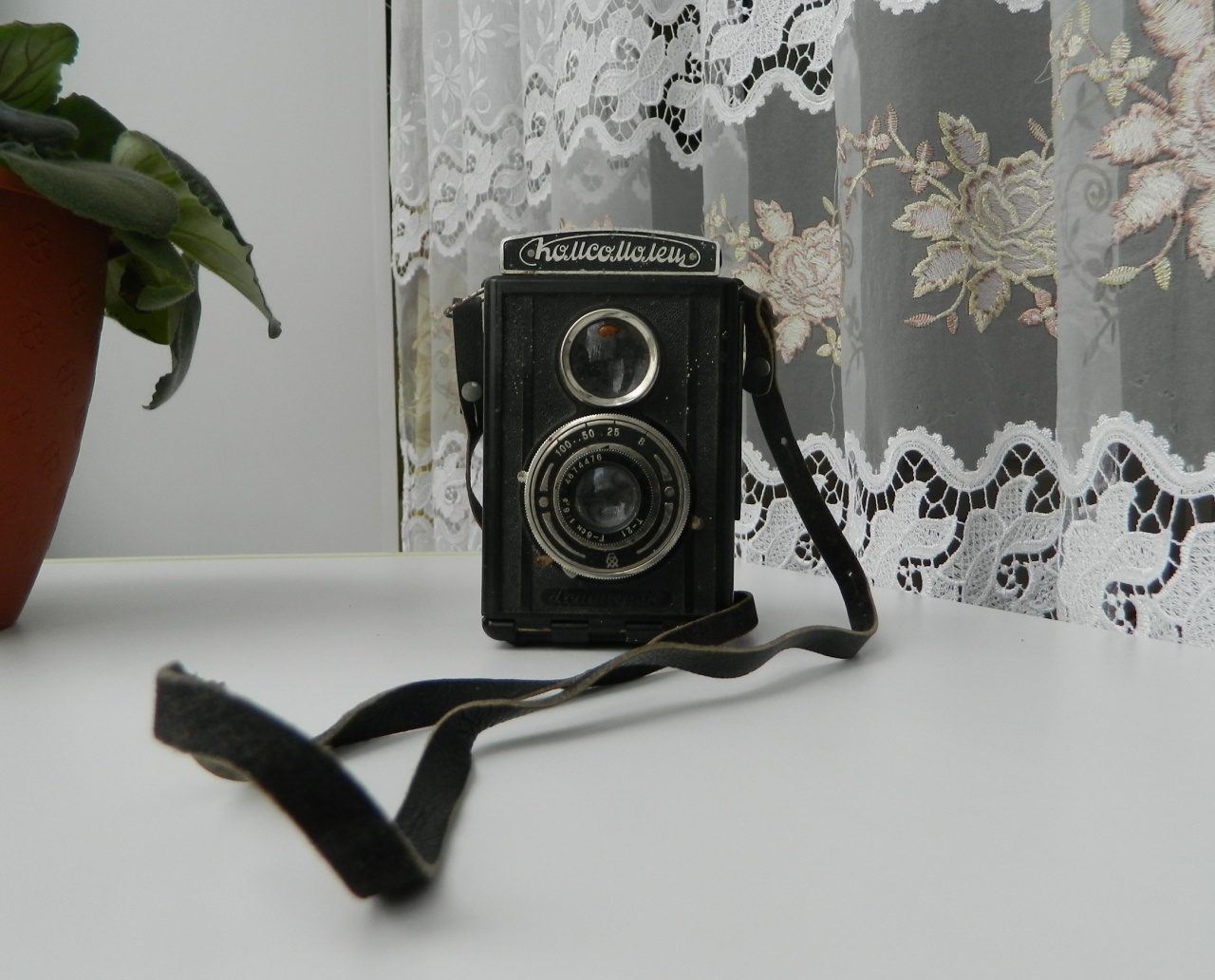 Выпуск этого аппарата в СССР прекратился аж в 1964 году, стало быть - мой ровесник, а то и старше. Но снимал он на средний формат, котрый пользовали только всякие Хассельблады и Мамии для Линд Евангелист и прочих Синди Кроуфорд.