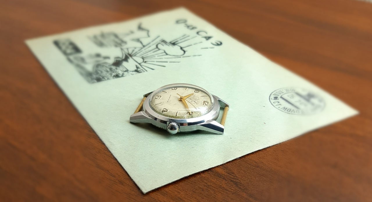 Часы (Полюс), новый кожаный винтажный ремешок, два конверта Южн. и Сев. Полюс, отправка по России первым классом. = 33 300 руб.