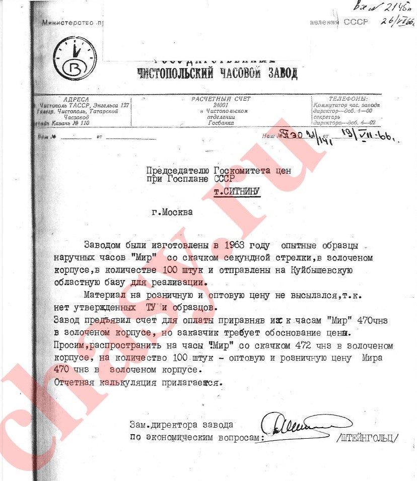 Опытные часы Мир 1963 г. со скачком секундной стрелки