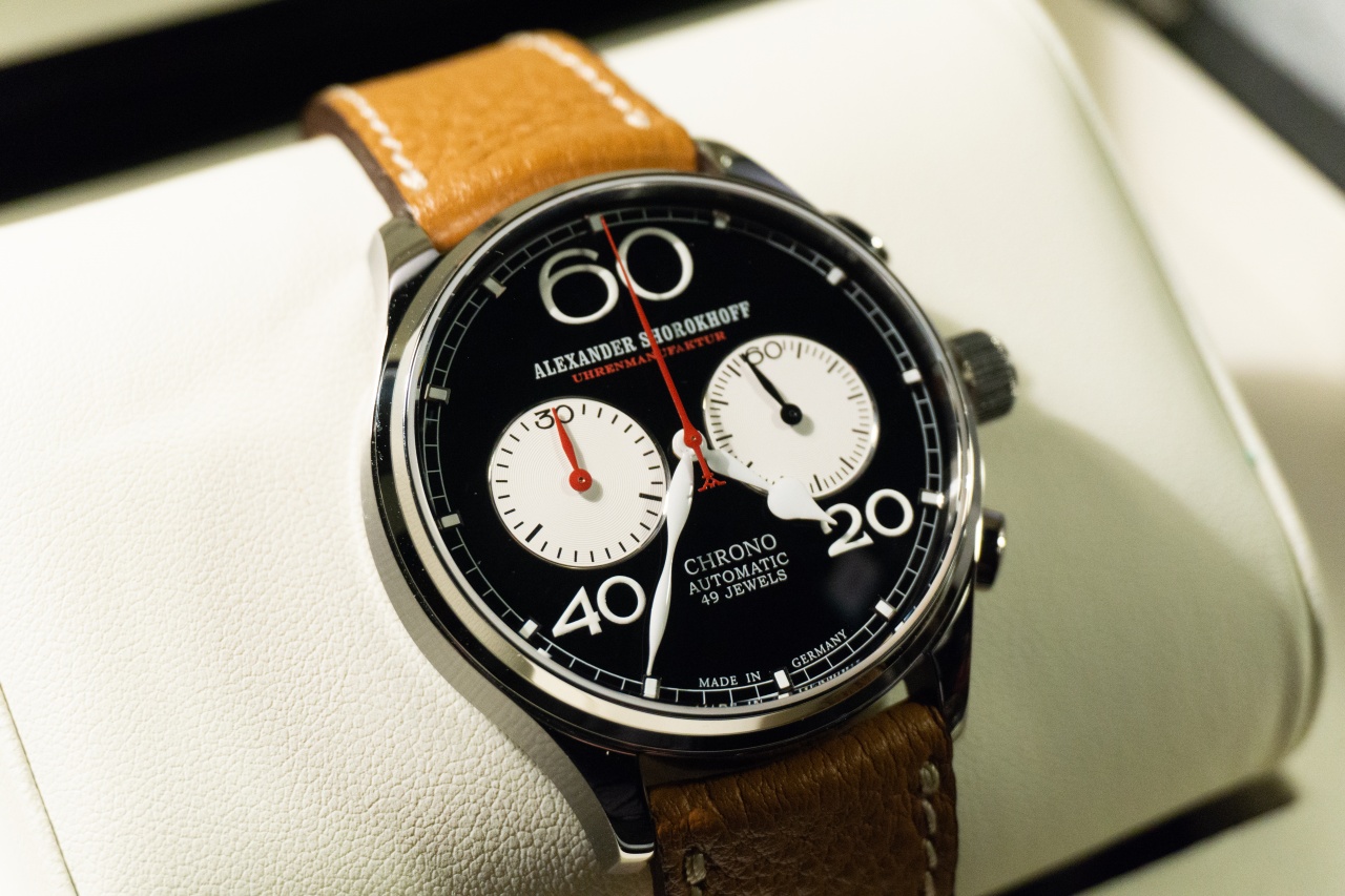 Предлагаю очень-очень редкие часы Alexander Shorokhoff AS.CA05, произведенные вручную в Германии. Это совершенно уникальные часы с неповторимым дизайном, вживую они действительно очень резко дифференцируют себя от всех остальных брендов.