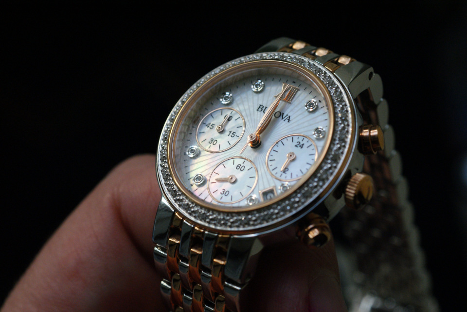 ЖЕНСКИЕ ЧАСЫ BULOVA 34 БРИЛЛИАНТА,ПОЗОЛОТА, БРАСЛЕТ, ХРОНОГРАФ, ПЕРЛАМУТРОВЫЙ ЦИФЕР ПОДАРОК ЛЮБИМОЙ