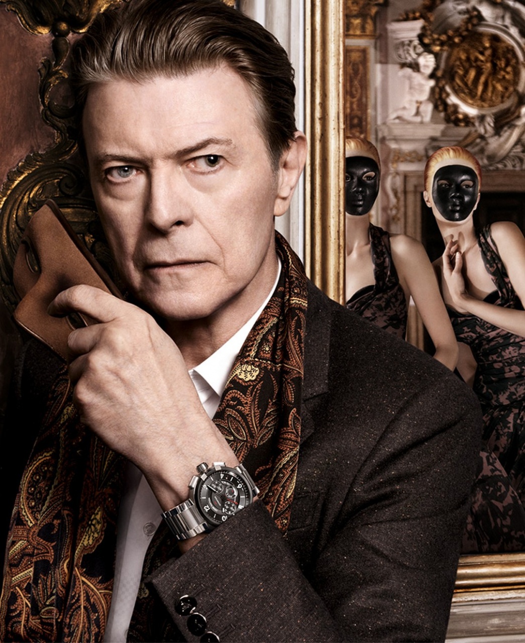 На фото с этой моделью часов (в белом металле) - Дэвид Боуи. Также приложено фото из интернета с такими часам в золоте. На обоих фото видно что часы на запястье смотрятся очень харизматично, шикарный массивный браслет, и корпус благодаря особому оформлению - крупным кнопкам хронографа и заводной головке сложной формы, обрамленной литерой V, визуально воспринимается даже больше чем заявленные 45,5 мм - смотрится как 46-48 мм.