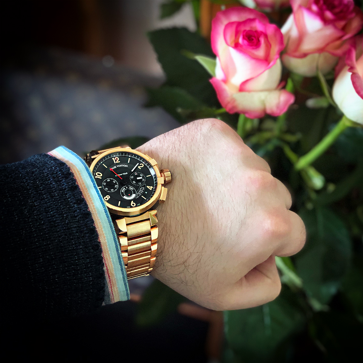 LOUIS VUITTON эксклюзив! Роскошный крупный мужской хронограф GMT 45.5 мм! РОЗОВОЕ ЗОЛОТО на БРАСЛЕТЕ! - Часовой форум Watch.ru