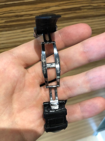 Ремешок был заменен на оригинальный из аллигатора. Дополнительно была установлена оригинальная раскладная бакля.