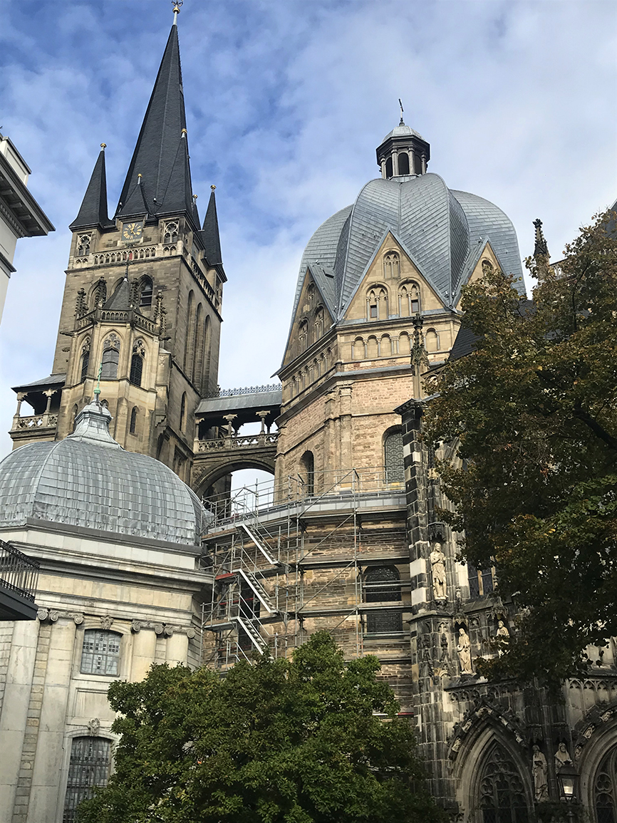 прогулялся, погода плохая. старинная ратуша построена от еще более старой (1300 лет) башни каролингов. город карла великого. сходил в музей газет и наелся сладкого. обратно до дюрена перепутал автобусы, сел на региональный (а надо было на экспресс от железной дороги) два часа ездил по деревням.