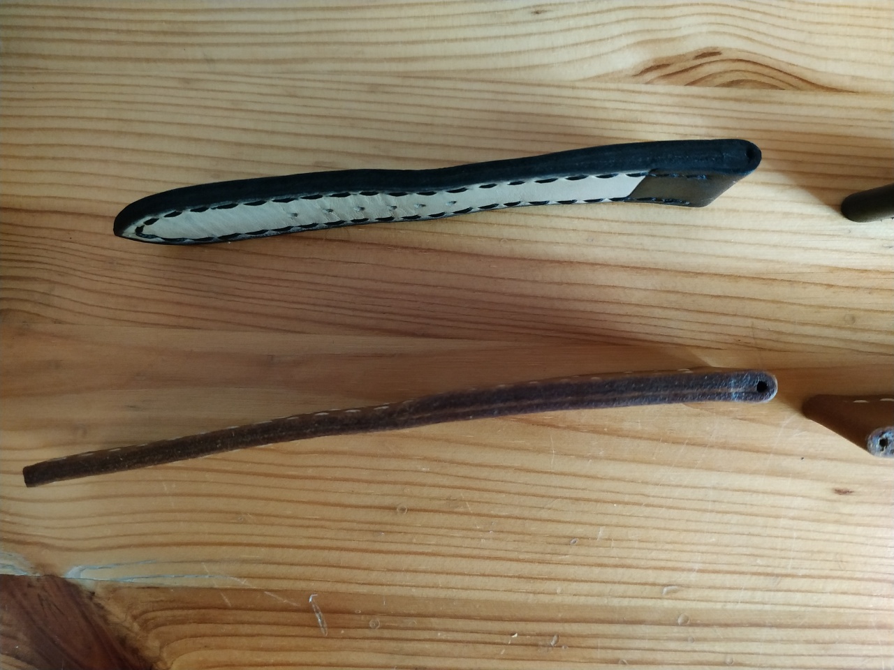1. Чёрный. Кожа телёнка. 22*20мм, 110 и 78мм длина каждой части, утолщение со стороны крепления к часам примерно 35мм, расстояние от часов до 1го отверстия 51мм, шаг между отверстиями 4,2-4,4мм, всего 6 отверстий, расстояние между крайними 28мм. Был дополнительно окрашен, есть следы краски на подкладе.