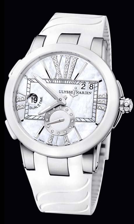 Очередная новинка от швейцарских часовых мастеров – эксклюзивные женские часы Dual Time Executive GMT Lady производства Ulysse Nardin. Роскошные часы представлены в трех версиях: с сиреневым циферблатом, перламутровом и перламутровом с применением желтого золота.