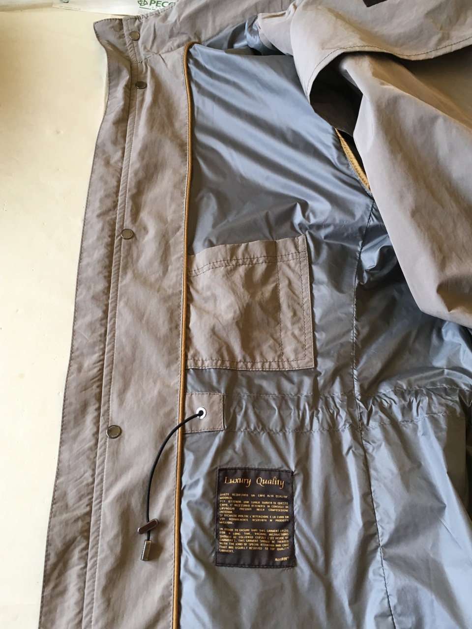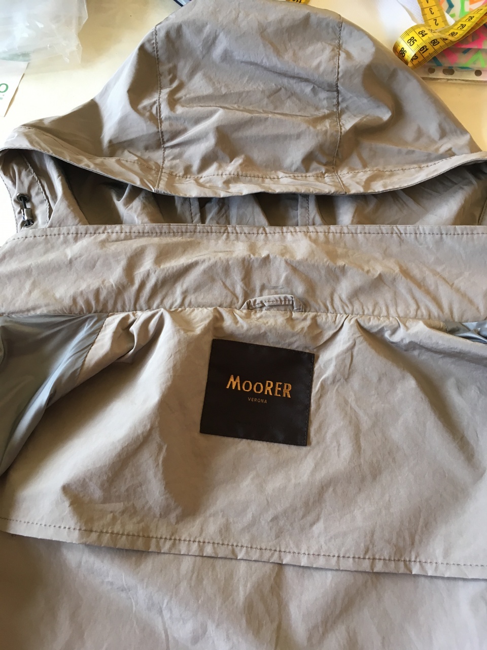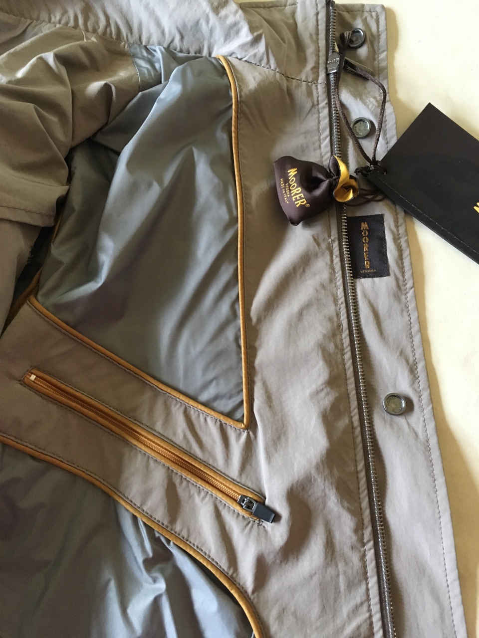 Продается новая мужская куртка-парка премиум бренда MOORER, превосходного исполнения, логотип, голограмма, бежевого цвета, высокий воротник, отстегивающийся облегченный капюшон, спереди застегивается молния с двойным ходом и кнопки, кнопки и фурнитура с логотипом бренда, двойные накладные карманы на кнопках, в которых сбоку прорезные карманы, два внутренних кармана, из которых один на молнии, пояс на кулиске с утяжкой, манжеты на кнопках с утяжкой, внутри на полу подкладке, состав: 70% полиэстер, 30% полиамид, гарантированный 100 % оригинал, размер 54(IT) , производство Италия.