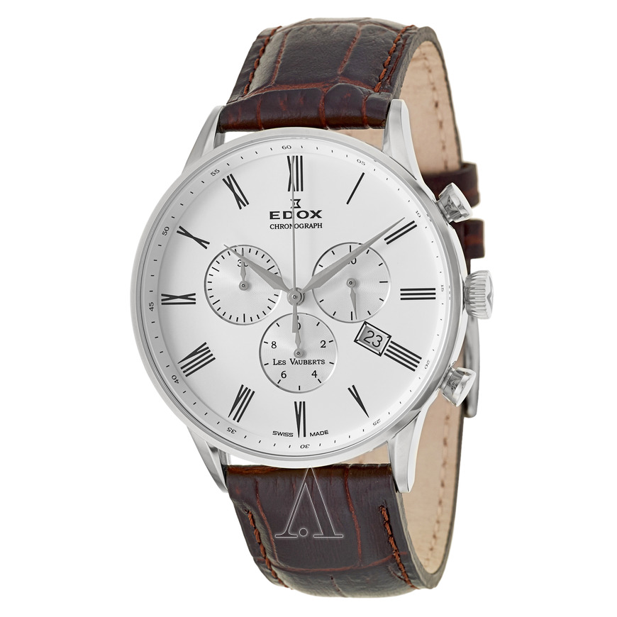 EDOX Les Vauberts Chrono 10408-3A-AR. Кварцевый хрон / Белый цифер / Коричневый ремешок / d=41mm