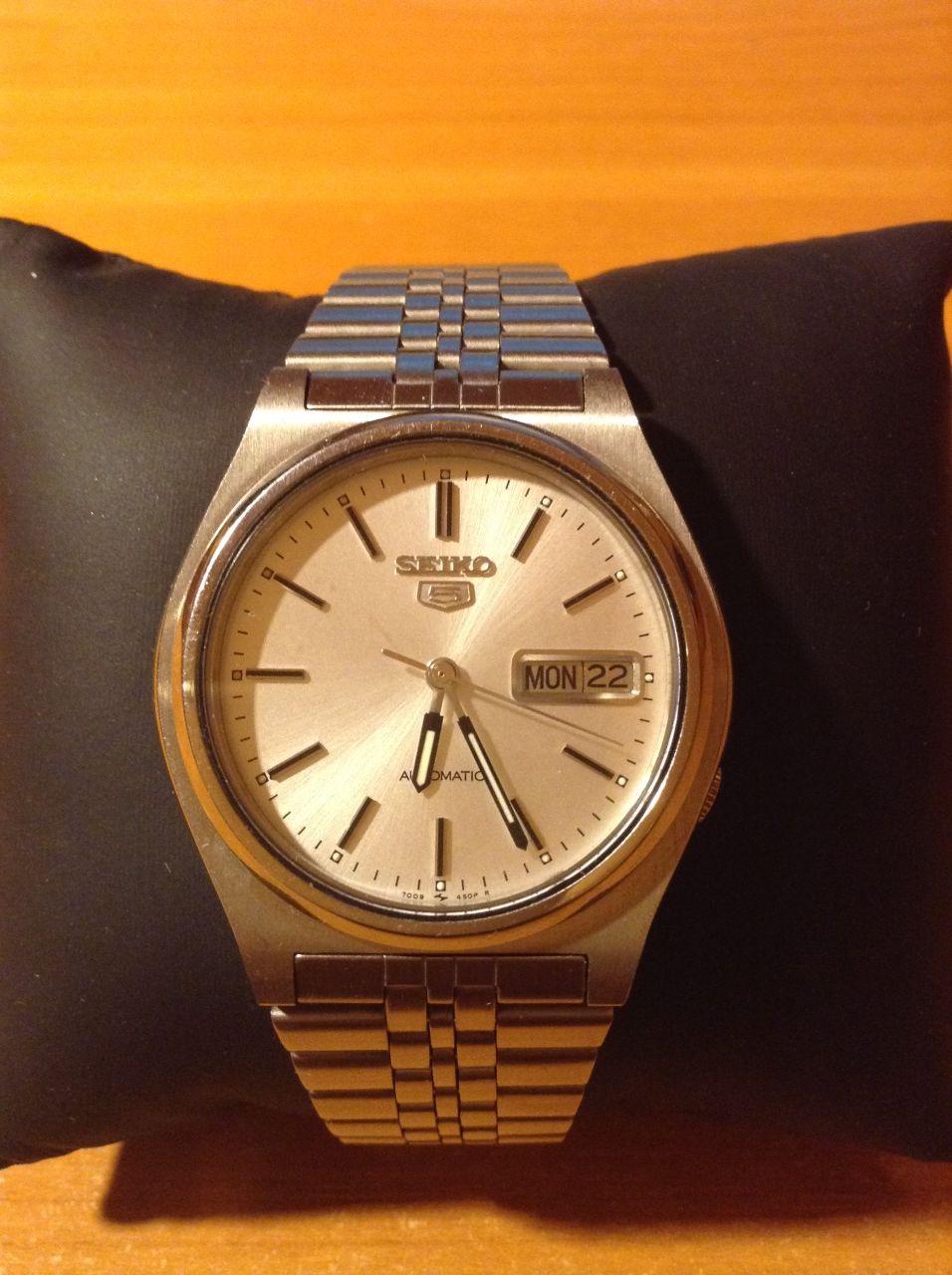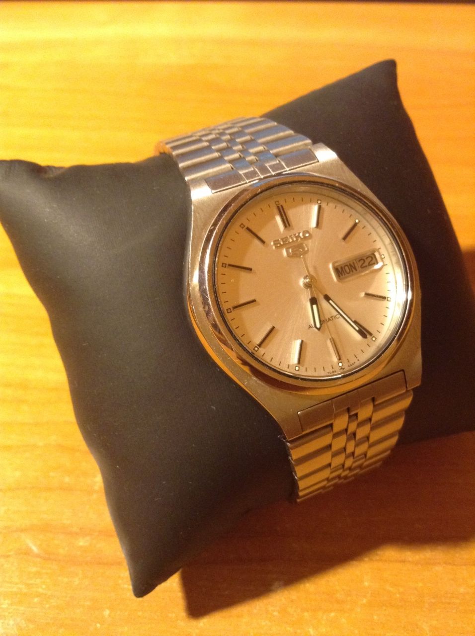 Механические наручные часы с автоподзаводом из коллекции Seiko 5 - классического вида, с окошком даты и дня недели. Само название «серия 5» отражает пять основных преимуществ этих часов: ударостойкость, водоустойчивость, автоматический механизм, отображение даты и отображение числа.