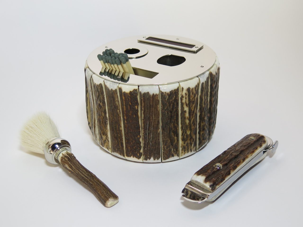 Сигарный набор ручной работы от семейной мануфактуры «CEDES Milano» из 100% рога европейского благородного (красного) оленя (CervusElaphusHippelaphus).