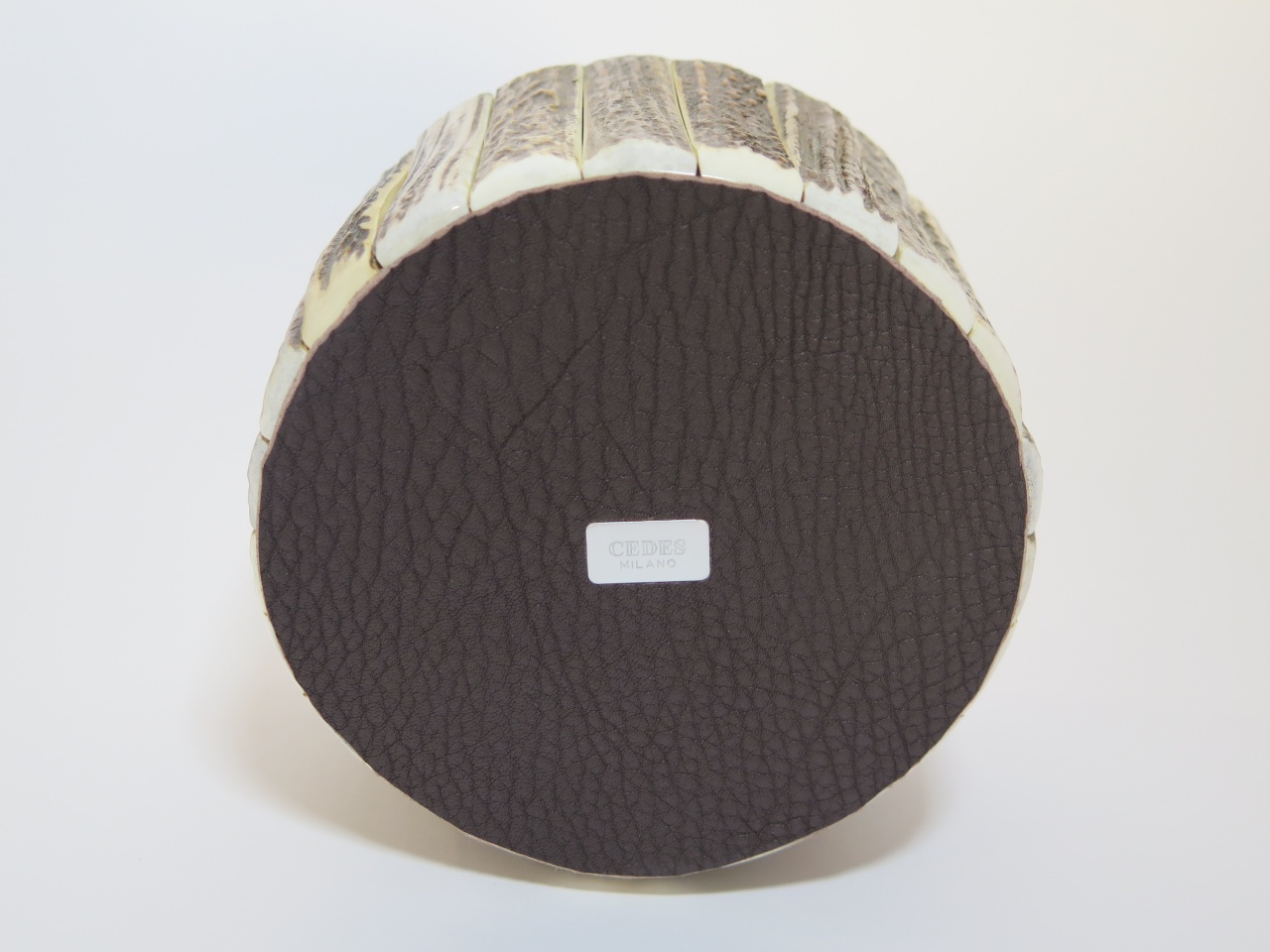 Дно сигарного набора имеет основу из оленьей кожи для предотвращения скольжения с металлической эмблемой марки «CEDESMilano» в качестве декоративного элемента.
