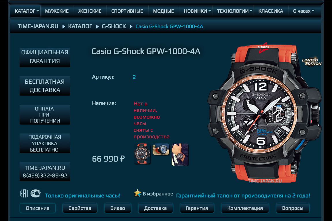 Премиальные Casio G-Shock GPW-1000-4A