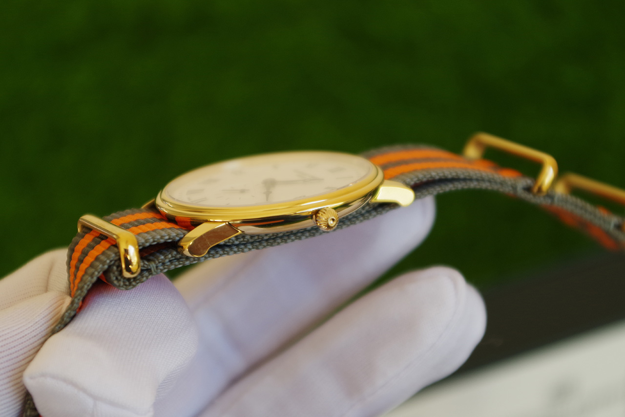 Slim Line. Ультратонкие 5мм. Корпус - гальваническая позолота 10 мкм. Циферблат с декором в технике гильоше. Секундная стрелка вынесена на отдельный циферблат. В комплекте сменный кожаный ремешок.