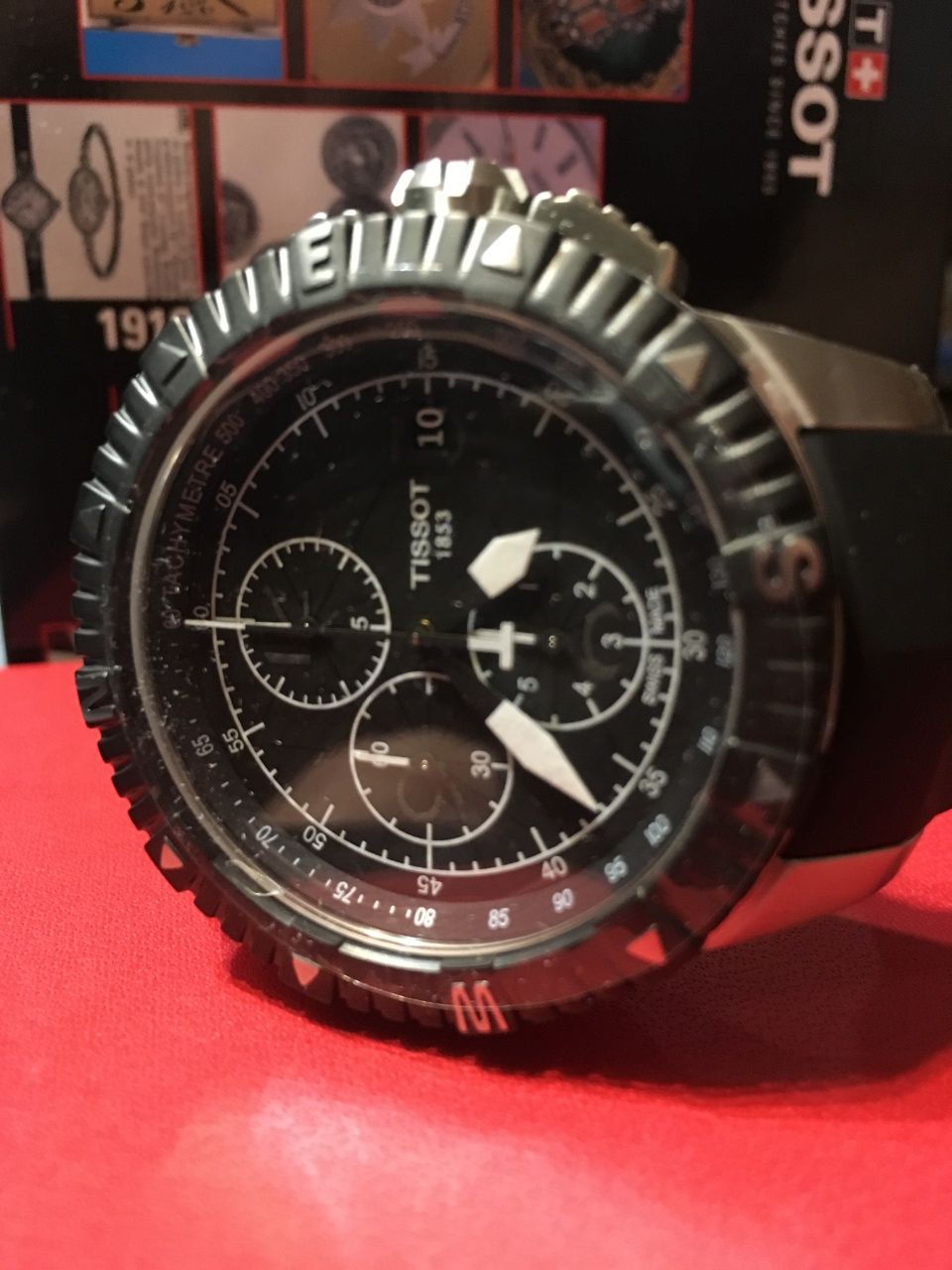 ПРОДАЮ НОВЫЕ ЧАСЫ TISSOT T062.427.17.057.00 T-Sport T-Navigator Automatic Chronograph - мужские механические наручные часы. Корпус этих часов крупного размера (44 мм) и выполнен из нержавеющей стали L316 металлического цвета. Модель TISSOT T062.427.17.057.00 T-Sport T-Navigator Automatic Chronograph имеет устойчивое к царапинам сапфировое стекло, ремешок из натурального каучука черного цвета, черный циферблат. Калибр механизма: ETA C01.211. Класс водозащиты: 100 м / 10 АТМ (разрешается плавание и ныряние без акваланга). Дополнительные функции и особенности: отображение числа, хронограф (секундомер), тахиметр. Полная заводская комплектация TISSOT. Стоимость в ритейле более 60000. Скидка за новые часы 40%.