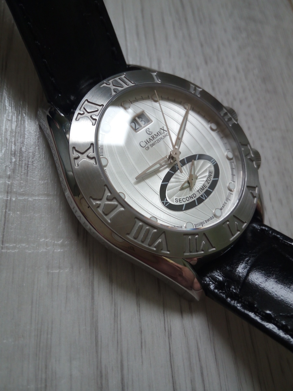 Вторая часовая зона на отдельном циферблате, гравированный безель, солидный мужской размер, отличная отделка корпуса. Часы в хорошем состоянии, стекло чистое, по корпусу минимум следов эксплуатации, на задней крышке - пленка.