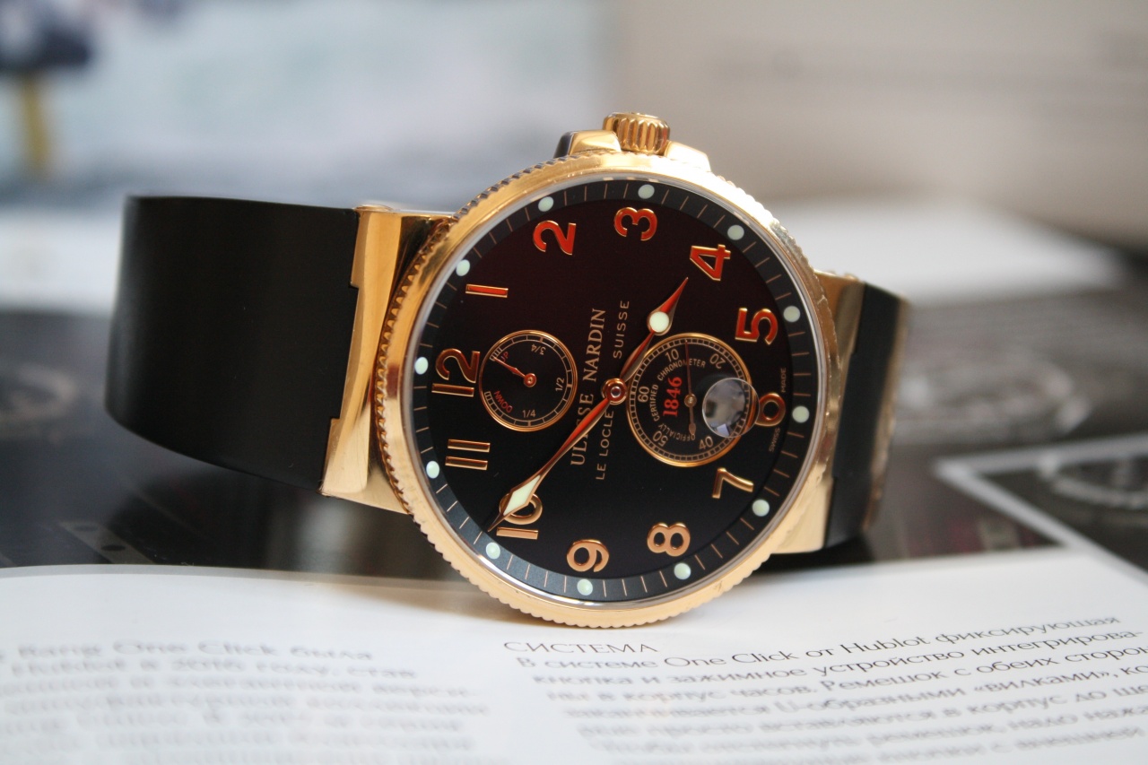 ЦЕНА, -70% OFF!!! Ulysse Nardin Maxi Marine Chronometer 266-66 /ЗОЛОТО/ 41 ММ /КАУЧУК С КЛИПСОЙ
