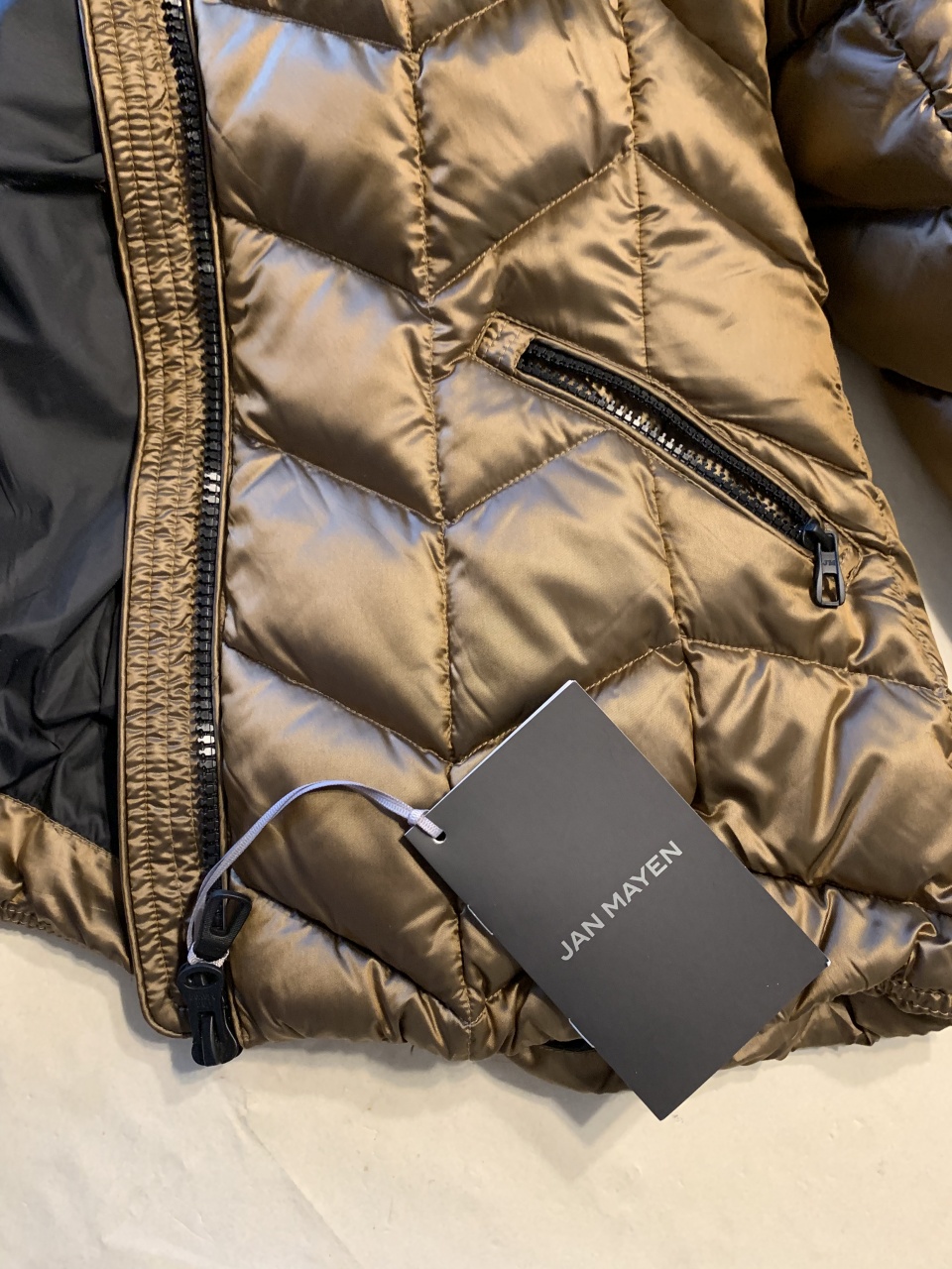 Продается новый женский пуховик итальянского бренда МООRER - линия JAN MAYEN превосходного исполнения, простеганный снаружи, плотная, не продуваемая ткань, цвета бронзы, логотип, воротник-стойка, переходящий в полноценный капюшон с утяжкой, застегивается на молнию с двойным ходом, фурнитура с логотипом бренда, два боковых прорезных кармана на молнии, внутренние карманы на молнии, внутри пух, манжеты рукавов на кнопках с утяжкой, состав: 100% полиэстер, все бирки прилагаются, гарантированный 100 % оригинал, размер 44 (IT) , страна бренда Италия. Бренд по достоинству оценят любители одежды класса де люкс, изделие смотрится дорого и стильно, отличное сочетание цена-качество. Возможна доставка почтой ЕMS, СДЭК дополнительные фотографии по запросу.