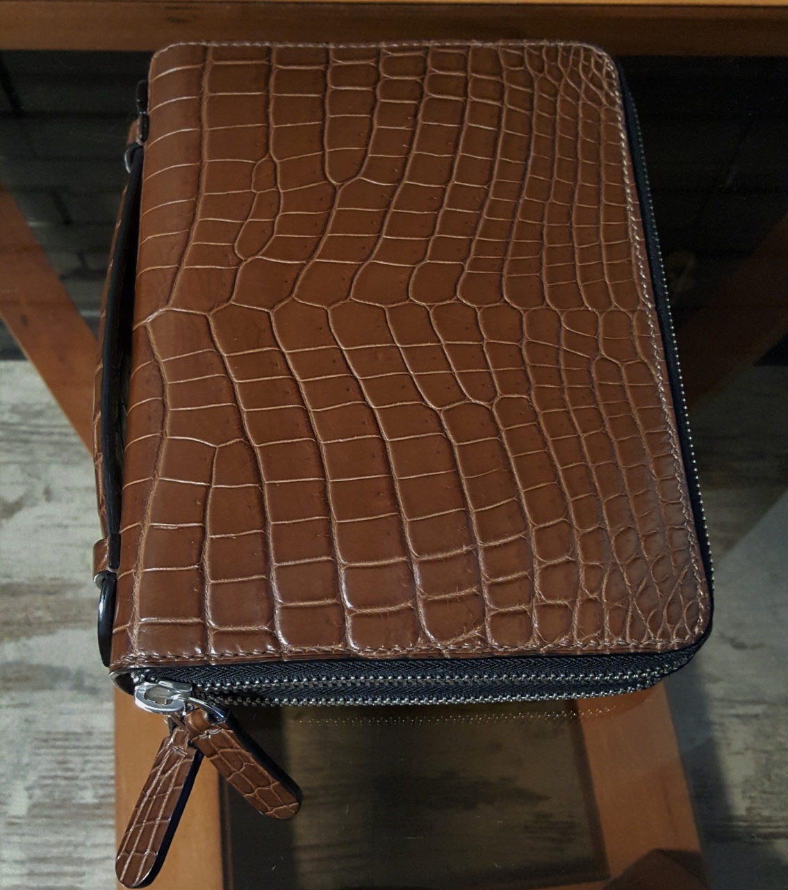 Изготовлен из 100% кожи нильского крокодила высочайшего качества выделки из цельного куска с живота рептилии.
