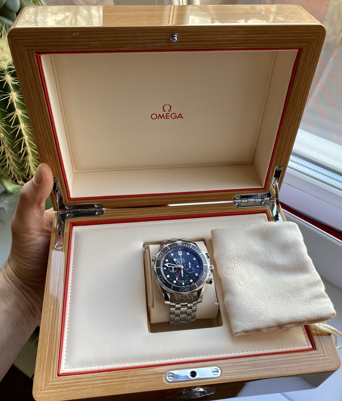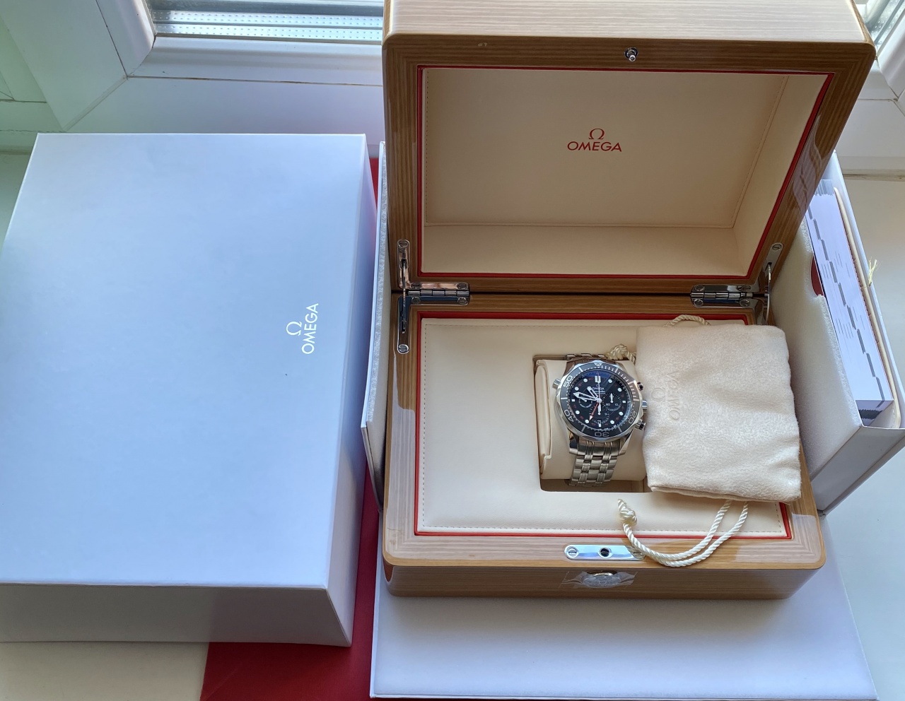 НОВЫЕ часы, в пленках, из бутика Омега. Бирки, коробки, карта, транспортировочные коробки.