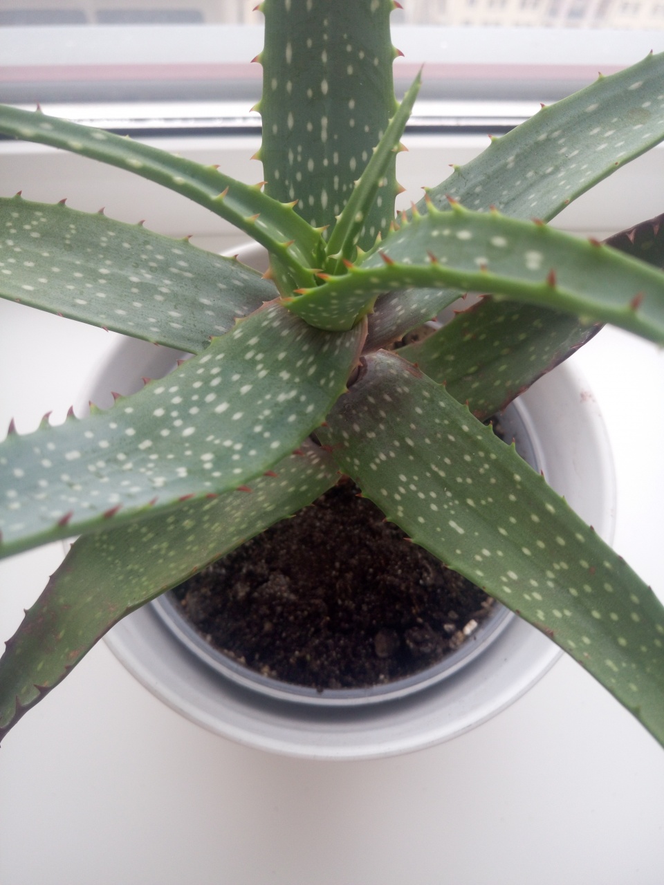 Хавортиевидное алоэ с мясистыми листьями в крапинку.