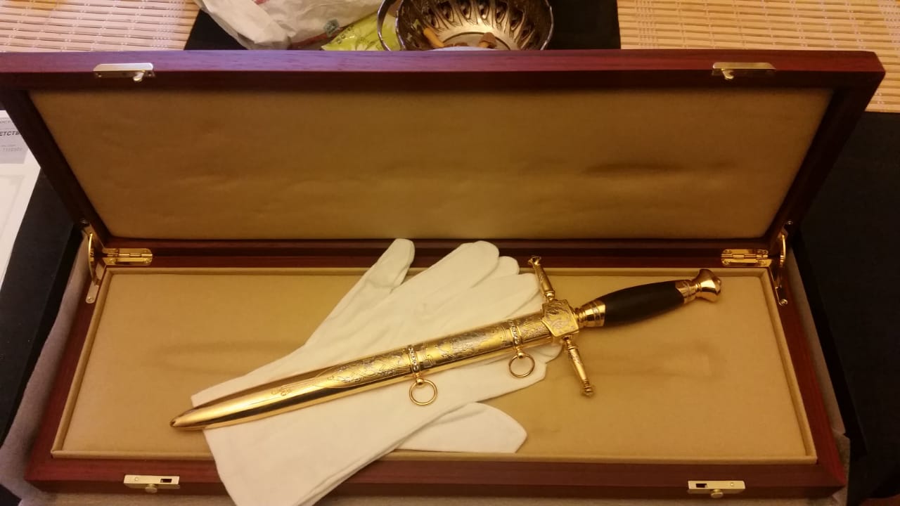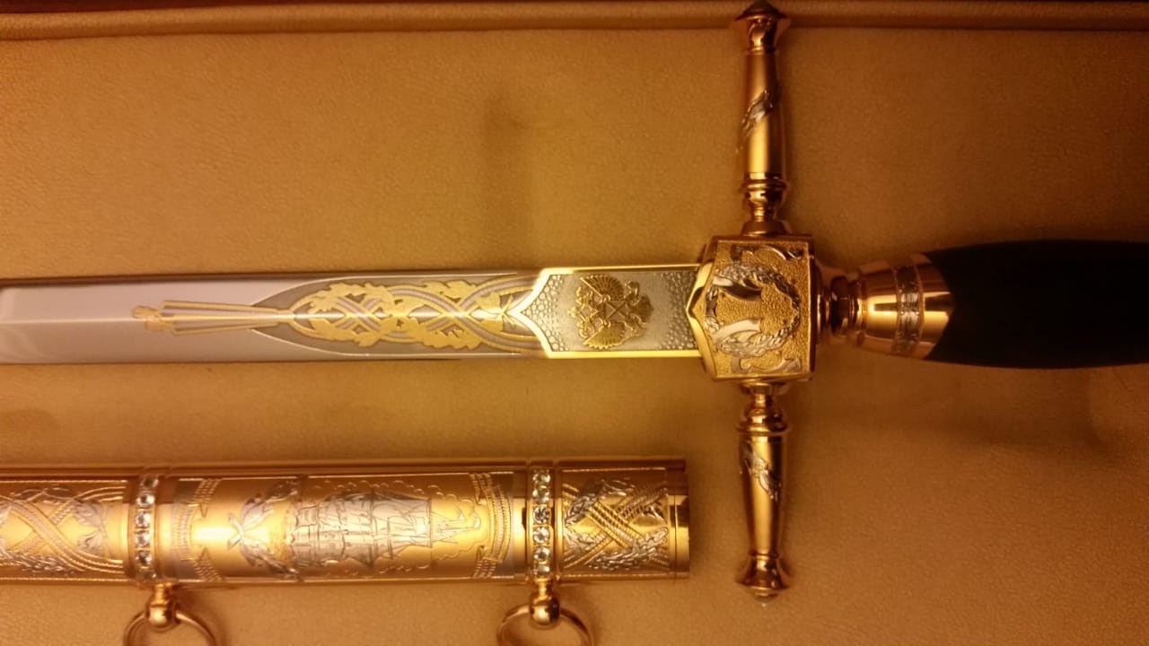 Кортик наградной, позолота, топазы "Оружейникъ"