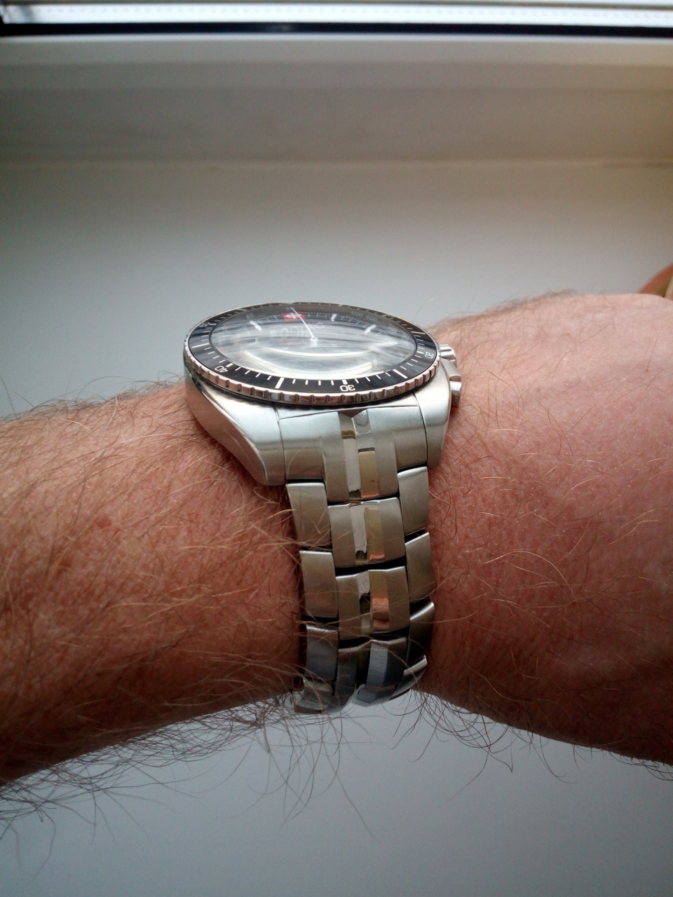 Браслет: очень красивый, сатинирование и полировка на 22мм, с дайверской застежкой на руку до 18см, доп. звеньев нет