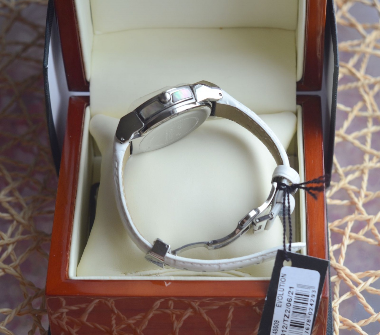 Белый ремешок из натуральной кожи с раскладной застёжкой "бабочка".