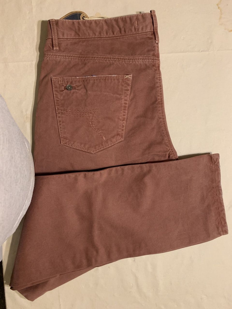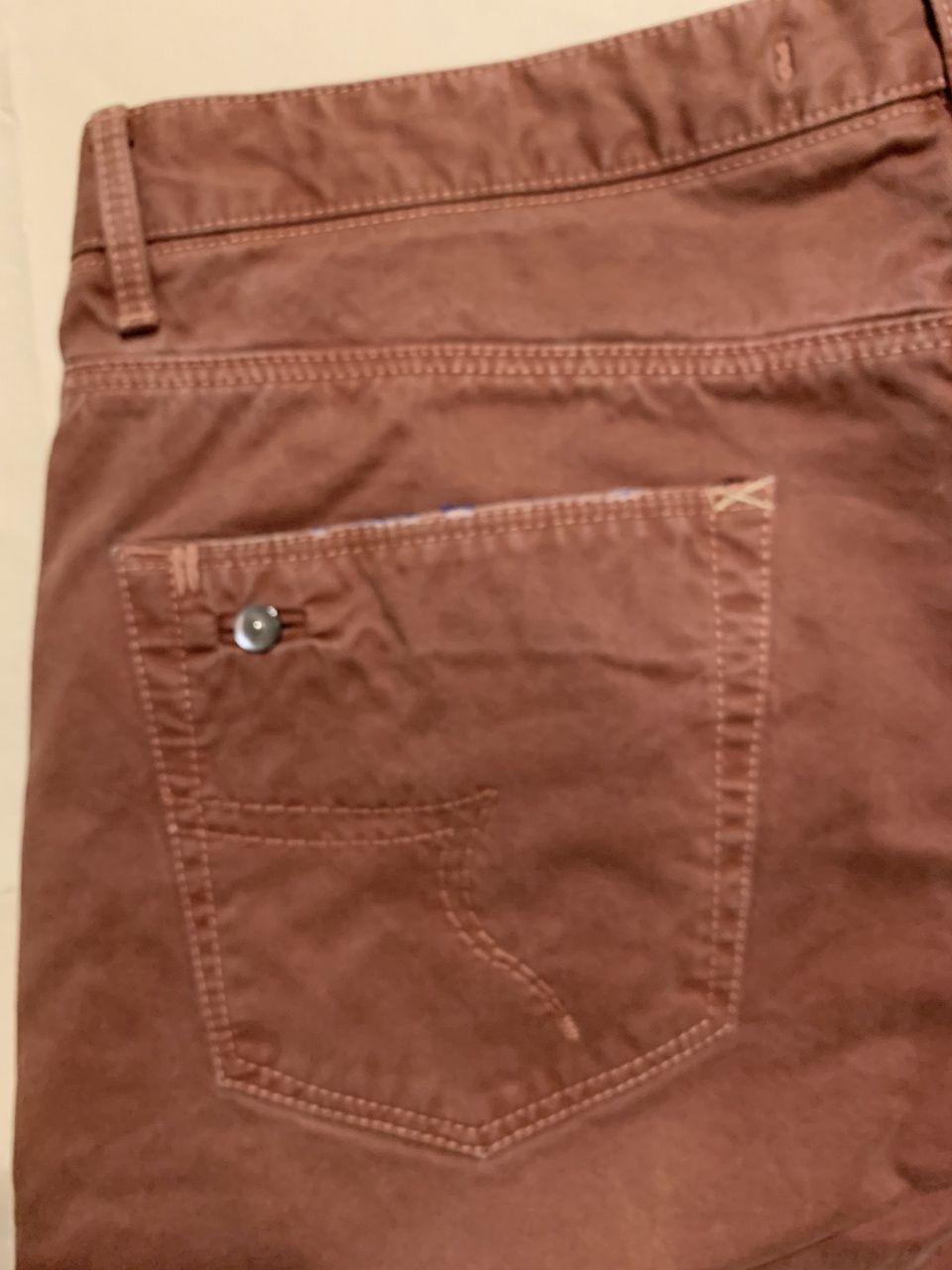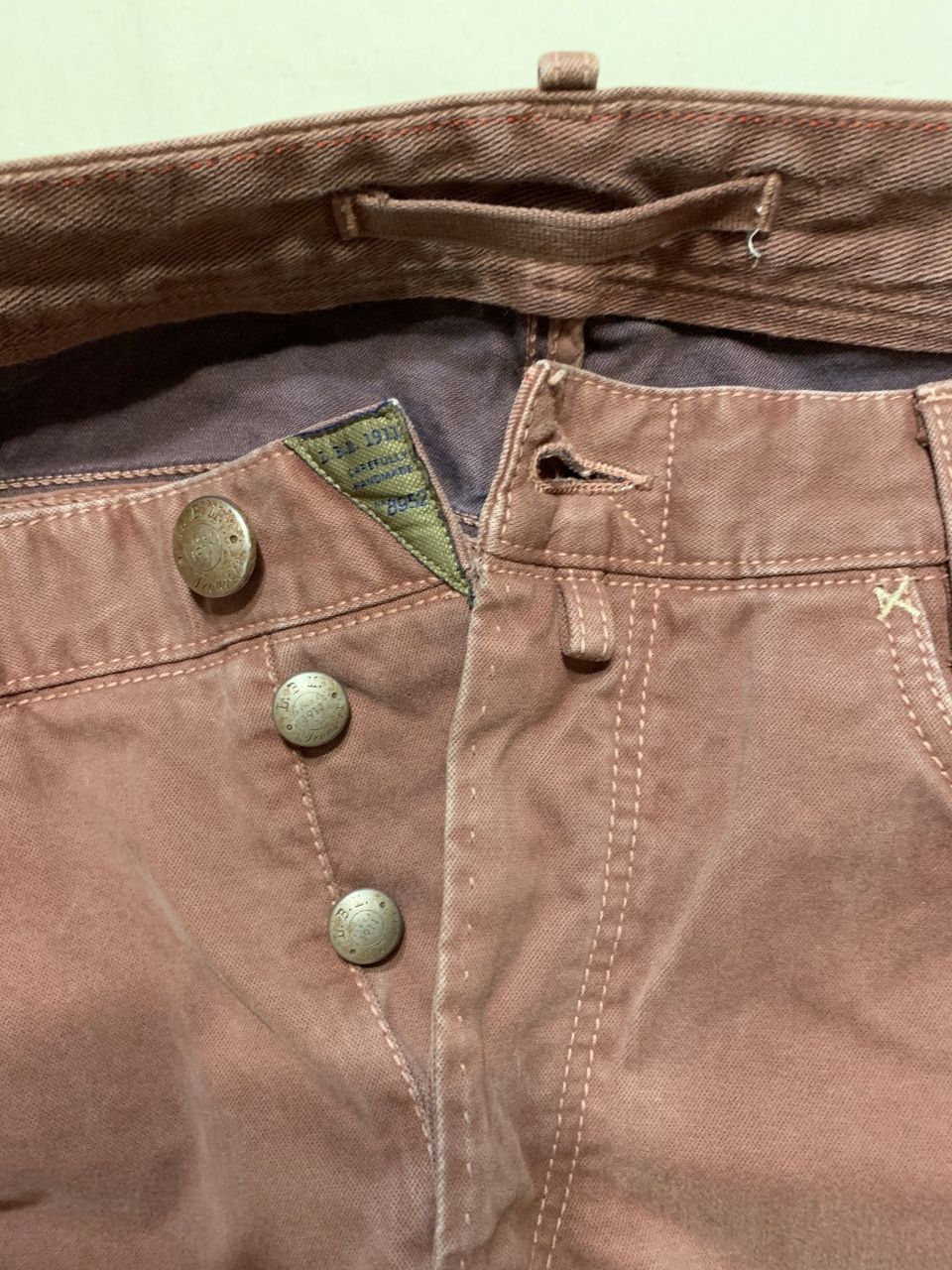 Продаются новые мужские брюки джинсового кроя итальянскогo бренда L.B.M. 1911 (Luigi bianchi mantova, семейная компания со столетней историей, высоко котирующаяся в Италии) дизайнерская модель ,искусственно состаренные, c элементами ручной работы,флагманская модель , превосходного исполнения, плотная ткань, цвет светло-кораллового цвета, логотип, классическая посадка на талии, застегиваются на пуговицы с логотипом бренда, множество карманов, прямой крой брюк, ширина низа брючин 18 см, состав: 100% хлопок, все бирки и запасная фурнитура прилагаются, гарантированный 100% оригинал, размер 52(IT), производство Италия