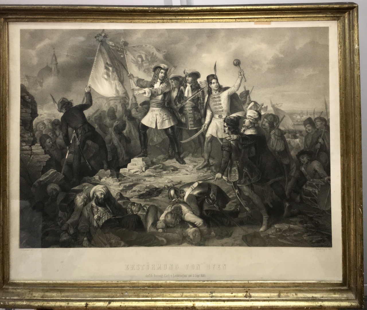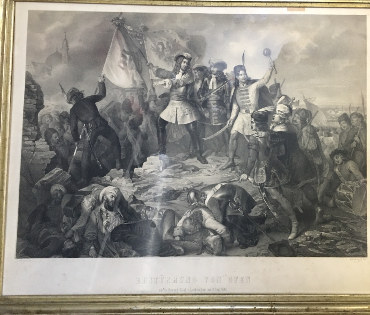 Старинная гравюра 19-й вер оригинал битва