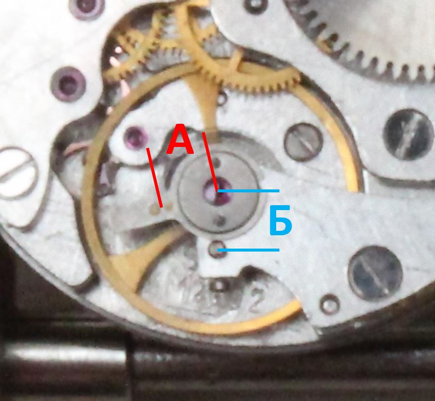 Это с одной стороны... А с другой, насколько одинаковы мосты у разных вариантов 2602? Вернее, расстояние между штифтами градусника, расстояние от оси баланса до центра штифтов градусника "А", и расстояние от оси баланса до оси колонки "Б".