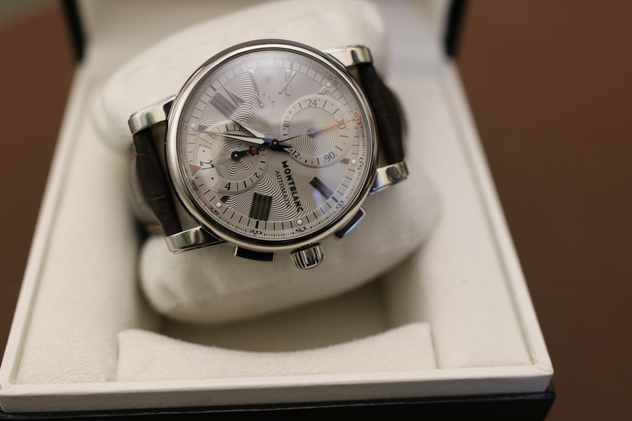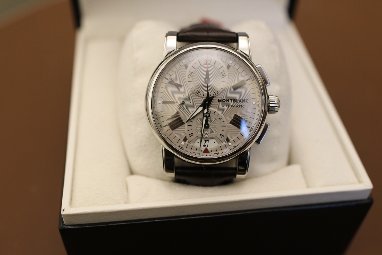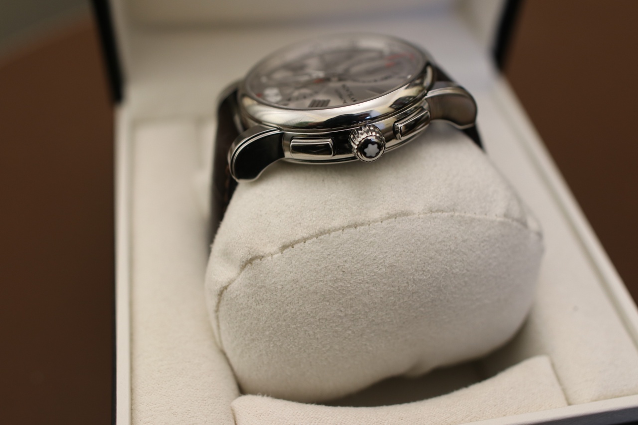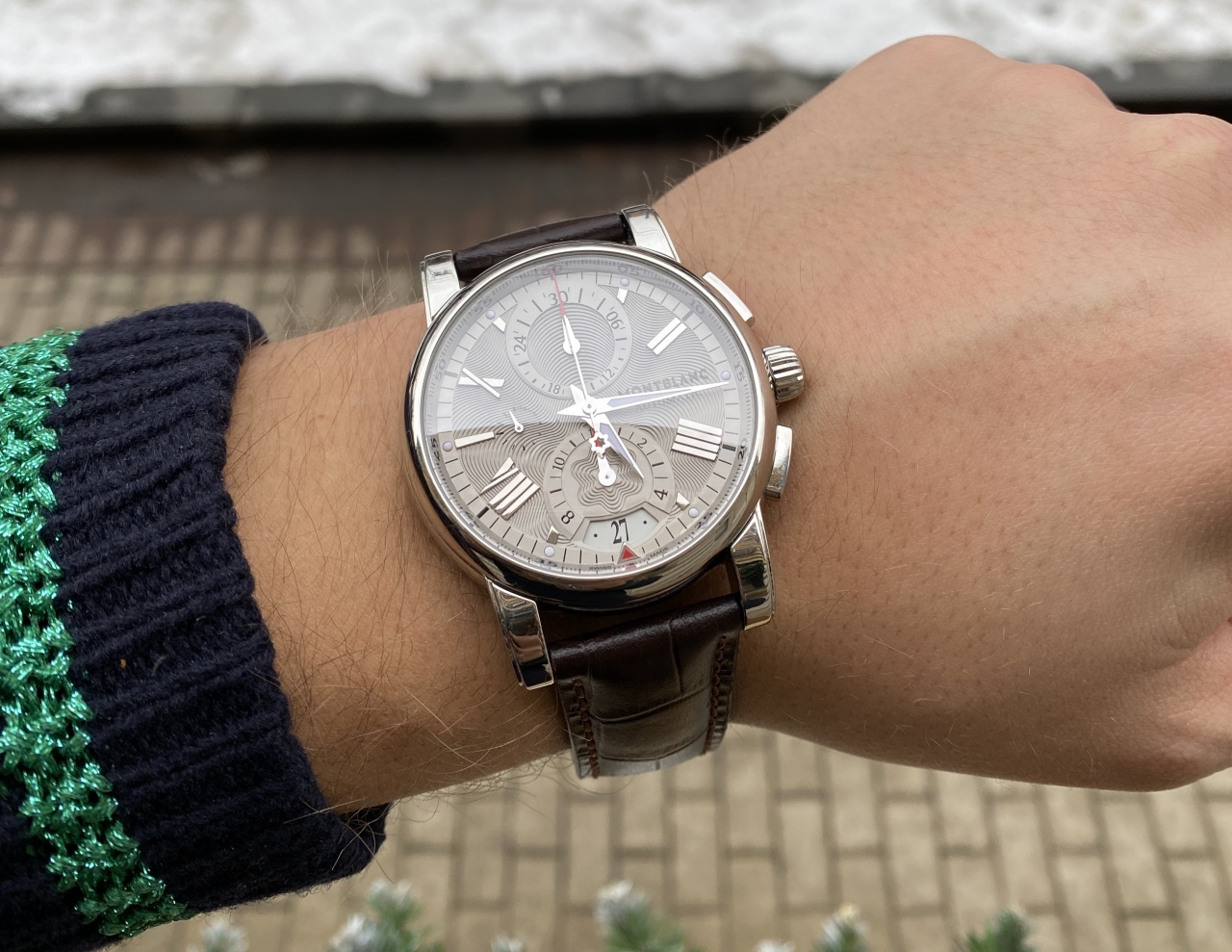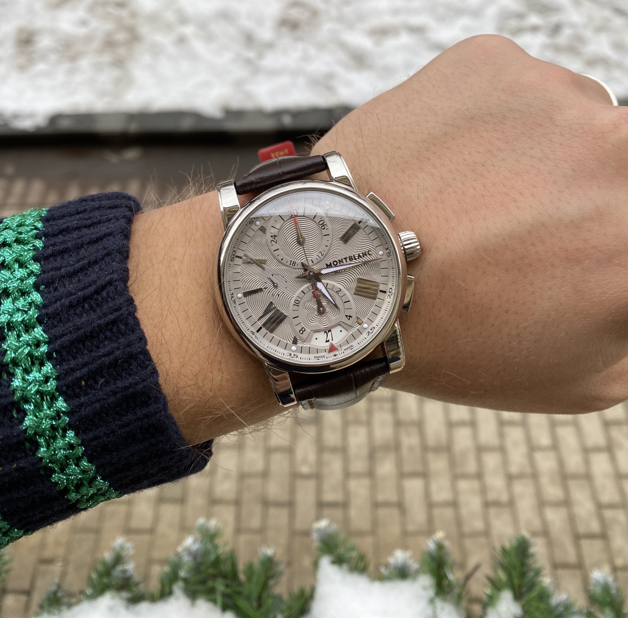 Прекрасный костюмный хронограф от Montblanc! Ход отличный , следы носки минимальны!
