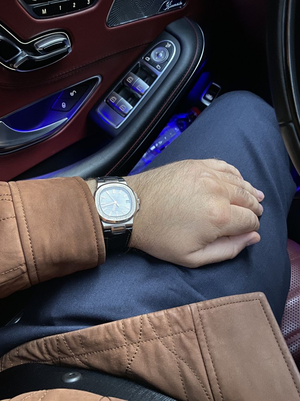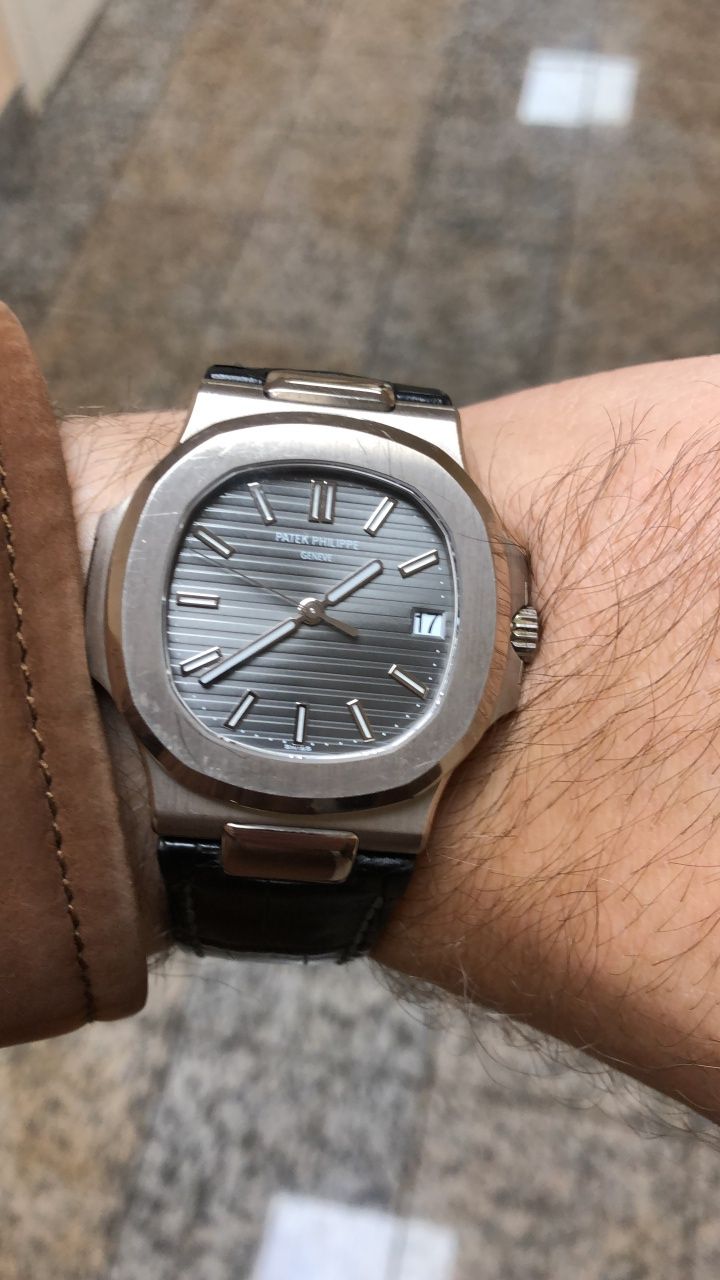 Patek Philippe Nautilus 5711G белое золото на коже
