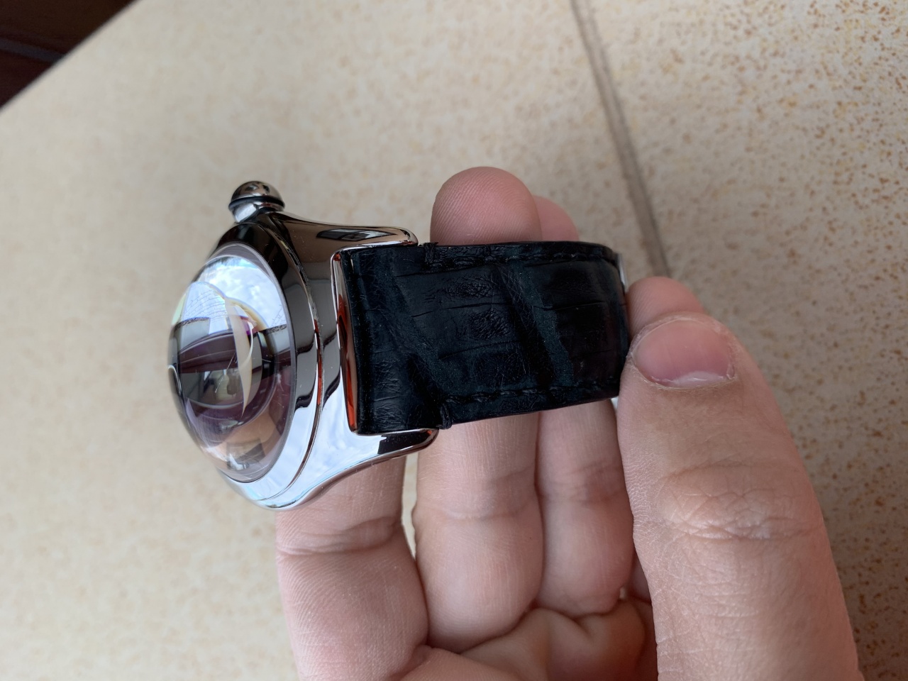 CORUM BUBBLE BOUTIQUE с темно-синим циферблатом на черном ремне.