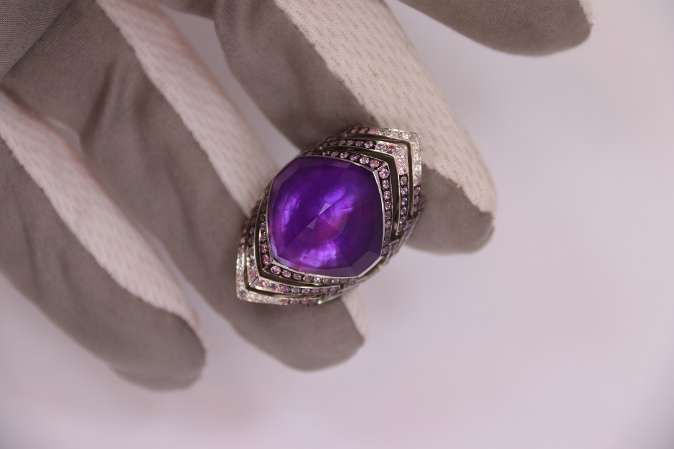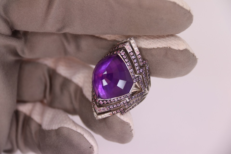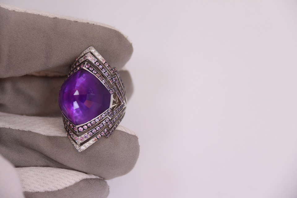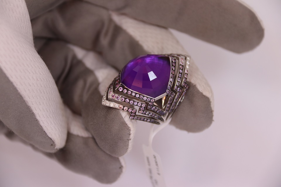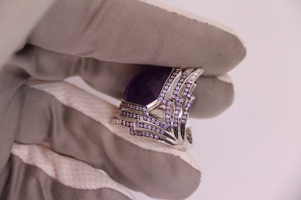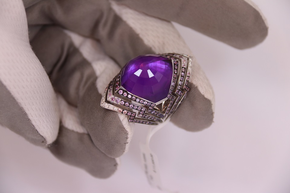< ЗОЛОТОЕ КОЛЬЦО > Stephen Webster Lady Stardust Crystal Haze / White Gold * ВЕС 20.36 Г * БЕЛОЕ ЗОЛОТО 18K / 750 * АМЕТИСТ / ПЕРЛАМУТР * САПФИРЫ * БРИЛЛИАНТЫ * РИТЕЙЛ В США $11.500 * ПРОДАЖА 240.000 - Часовой форум Watch.ru
